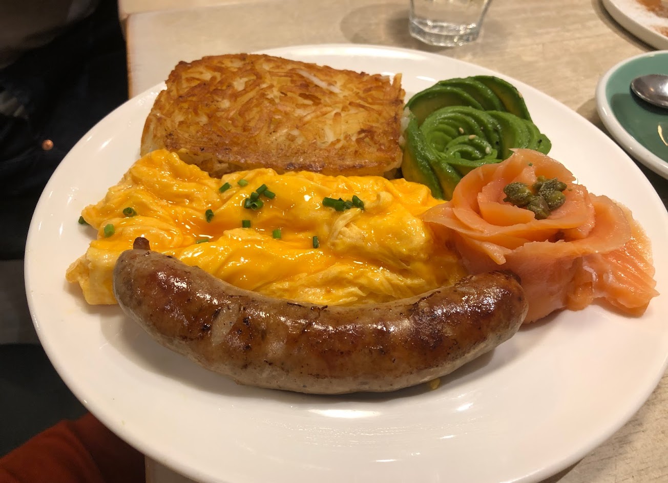 兩人吃皇后大早餐,,小土司4片,有點沒吃飽, 可能得加點, 皇后餐是一般美式餐, bacon, 有些油膩, 香菇煎蛋普通, 酪梨燻鮭魚不錯, 感覺貴了點, $890, 還沒包含100起跳的咖啡. 要吃飽,建議年輕人點其他餐TA, 酪梨,燻鮭魚餐. 要先網上預約,有點納悶.