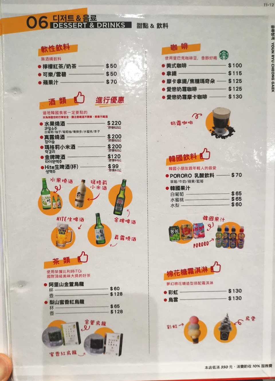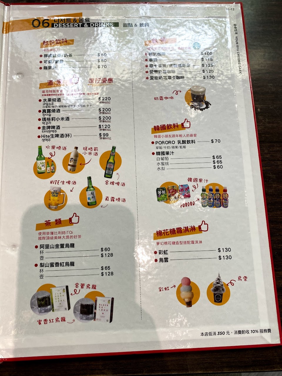 每人低消350,點了煎餅、拌飯、魚板湯,加服務費總共900多。