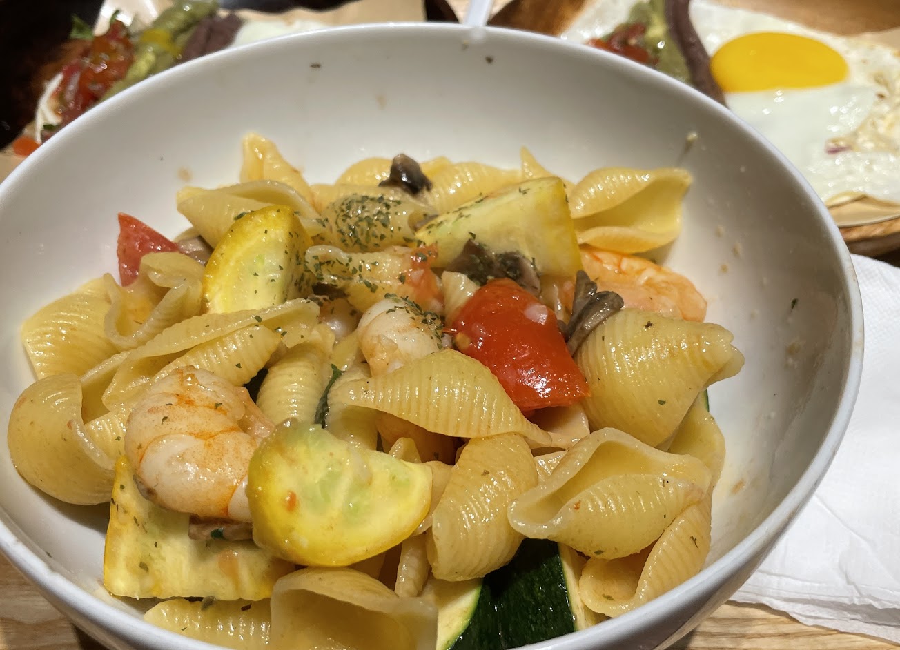 特別想推薦是海鮮塔可餅!後期才有的餐點但非常好吃耶!他們的蝦仁很大顆(應該是泡水後的大小因為過大?)
