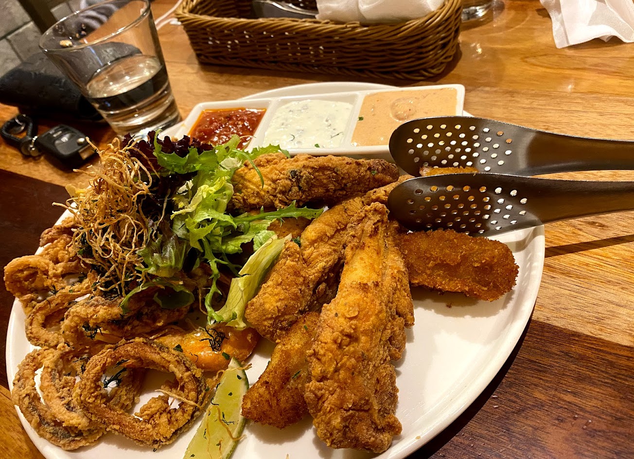 炸物真的普通,配的是千島優格醬其實不太搭,如果換成塔塔醬應該好很多。