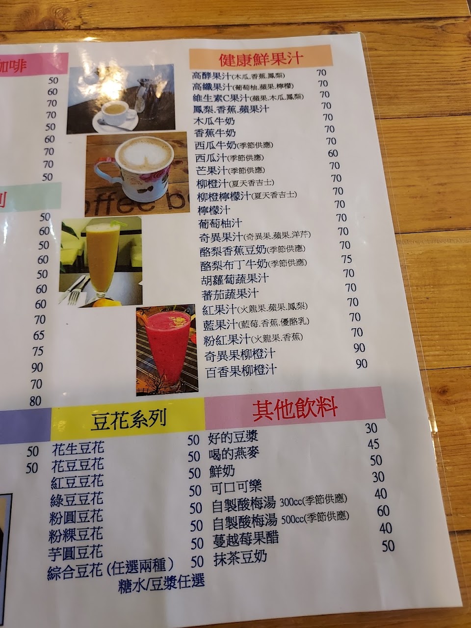店裡的飲料也不錯,孩子們喜歡紅果汁或藍果汁,大人常點豆漿或拿鐵。