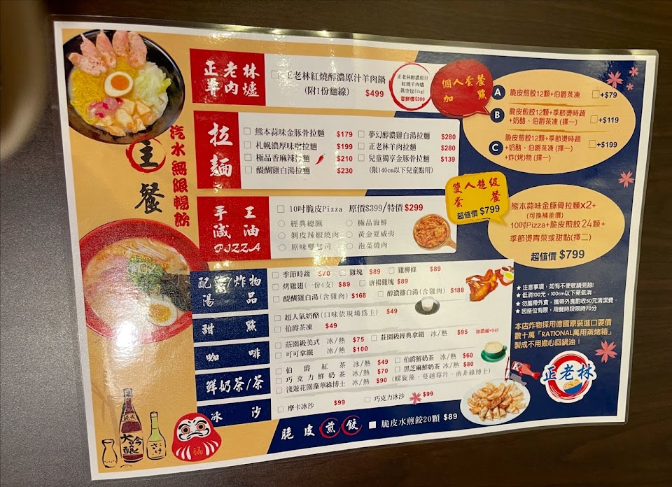 套餐加點煎餃 熊本蒜味金豚骨拉麵 羊肉拉麵 夏威夷披薩