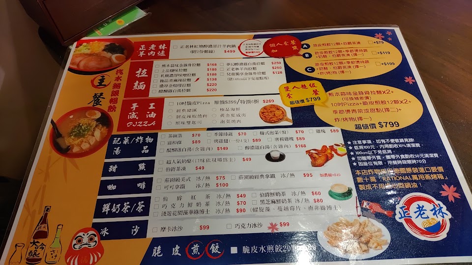 披薩是薄皮的不錯,羊肉拉麵也好吃