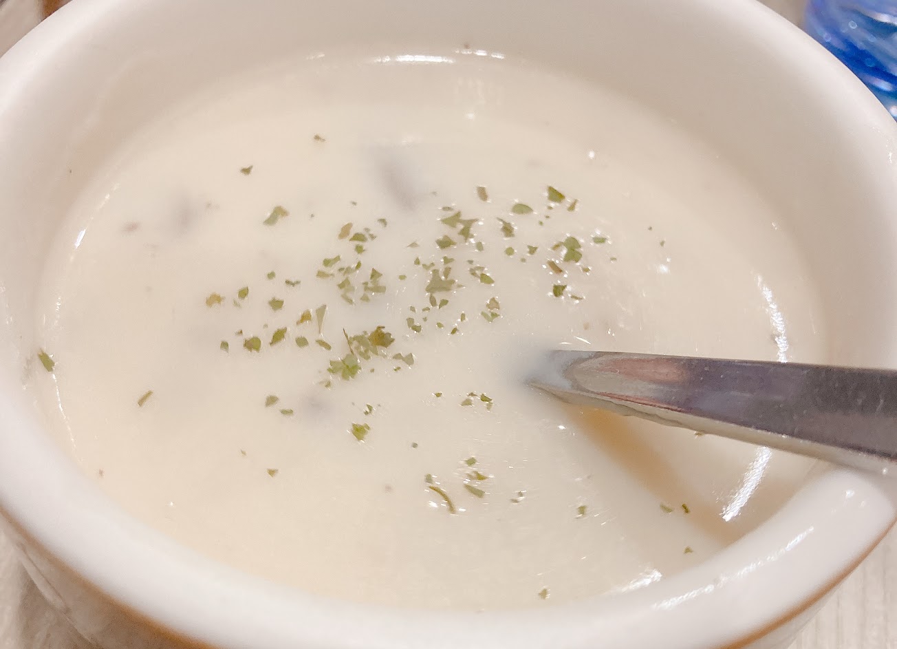 點了一碗60元的巧達濃湯,和內用完全不同,口味好淡,感覺被加水稀釋過,裡面的料也都不見了,只有幾片蘑菇跟一點零星的洋蔥,而且超級小小一碗,就像是自助餐便當店隨餐附贈的小湯,這樣竟然就要60元,根本連5塊的價值都沒有!!