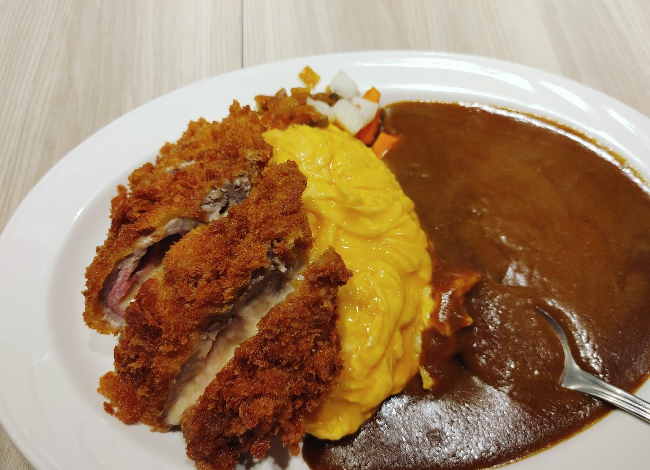藍帶豬排咖哩很厚實,蛋包飯滑順,還可以免費續飯!!