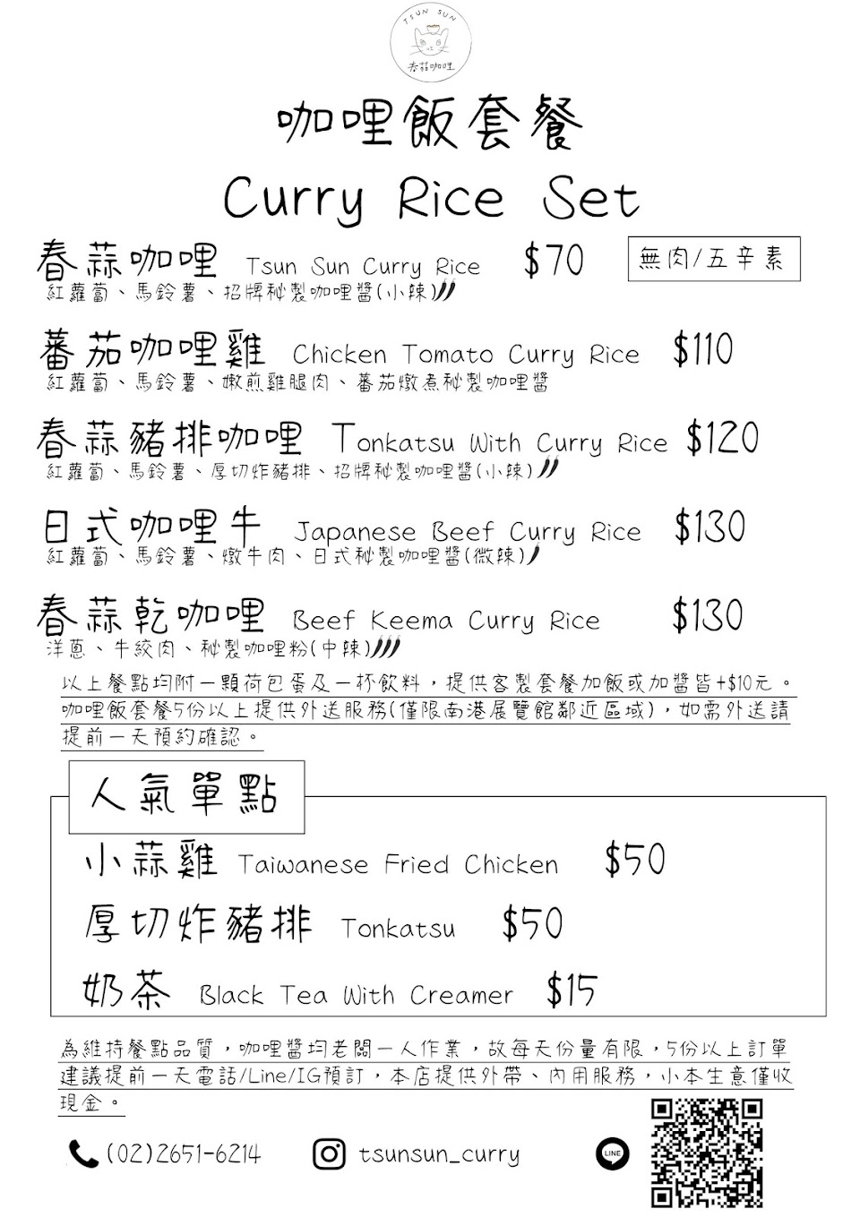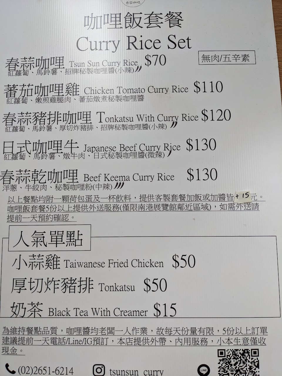 2024最新在地推薦餐廳的菜單_春蒜咖喱(有臨時店休or其他公告請看Google map最新動態)的菜單、圖片