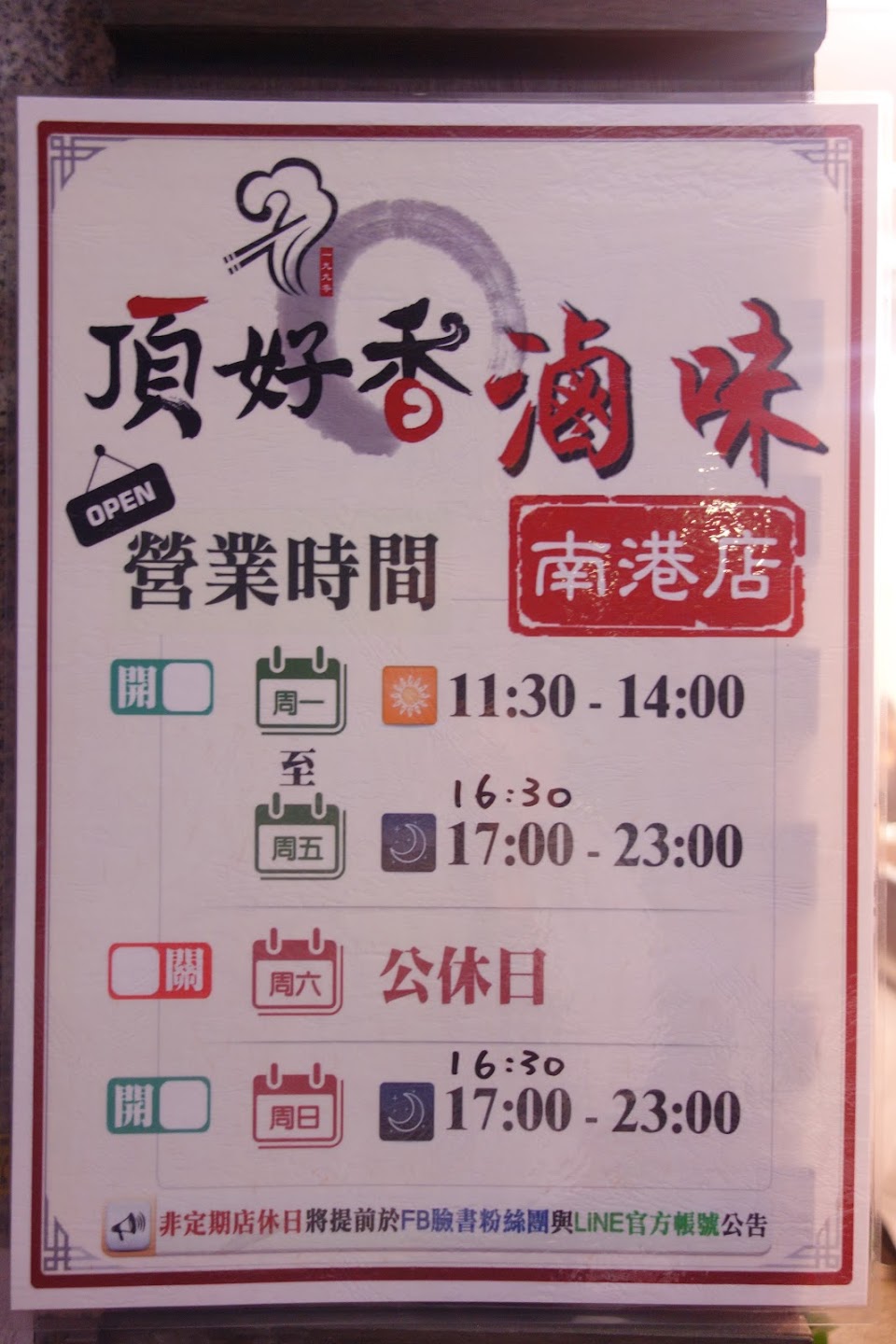 | 星期一 | 11:30–14:00 16:30–22:00 |