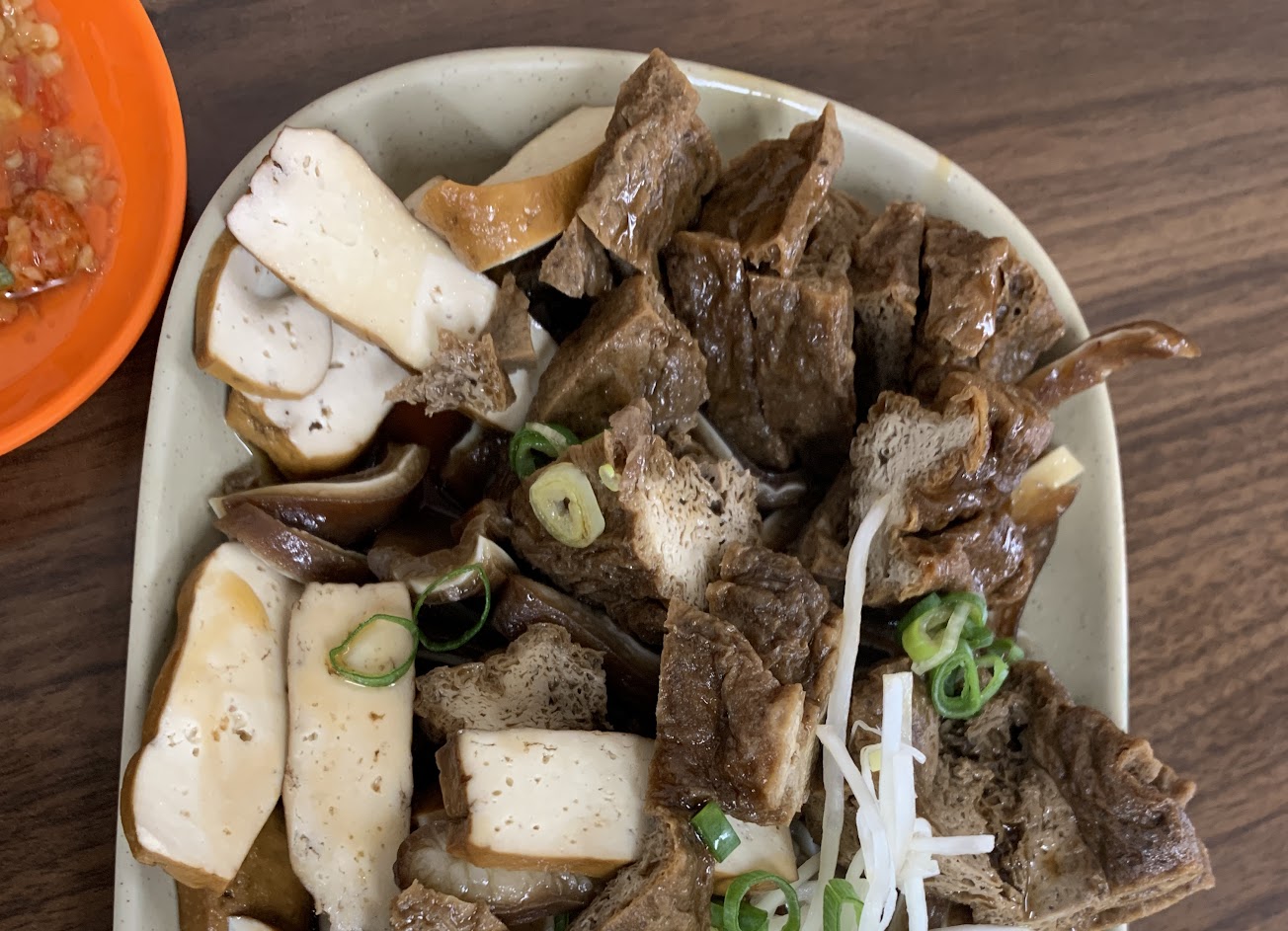 我都買陽春麵+滷肉飯(雞肉飯)+豆干(海帶)當晚餐,很好吃~~~