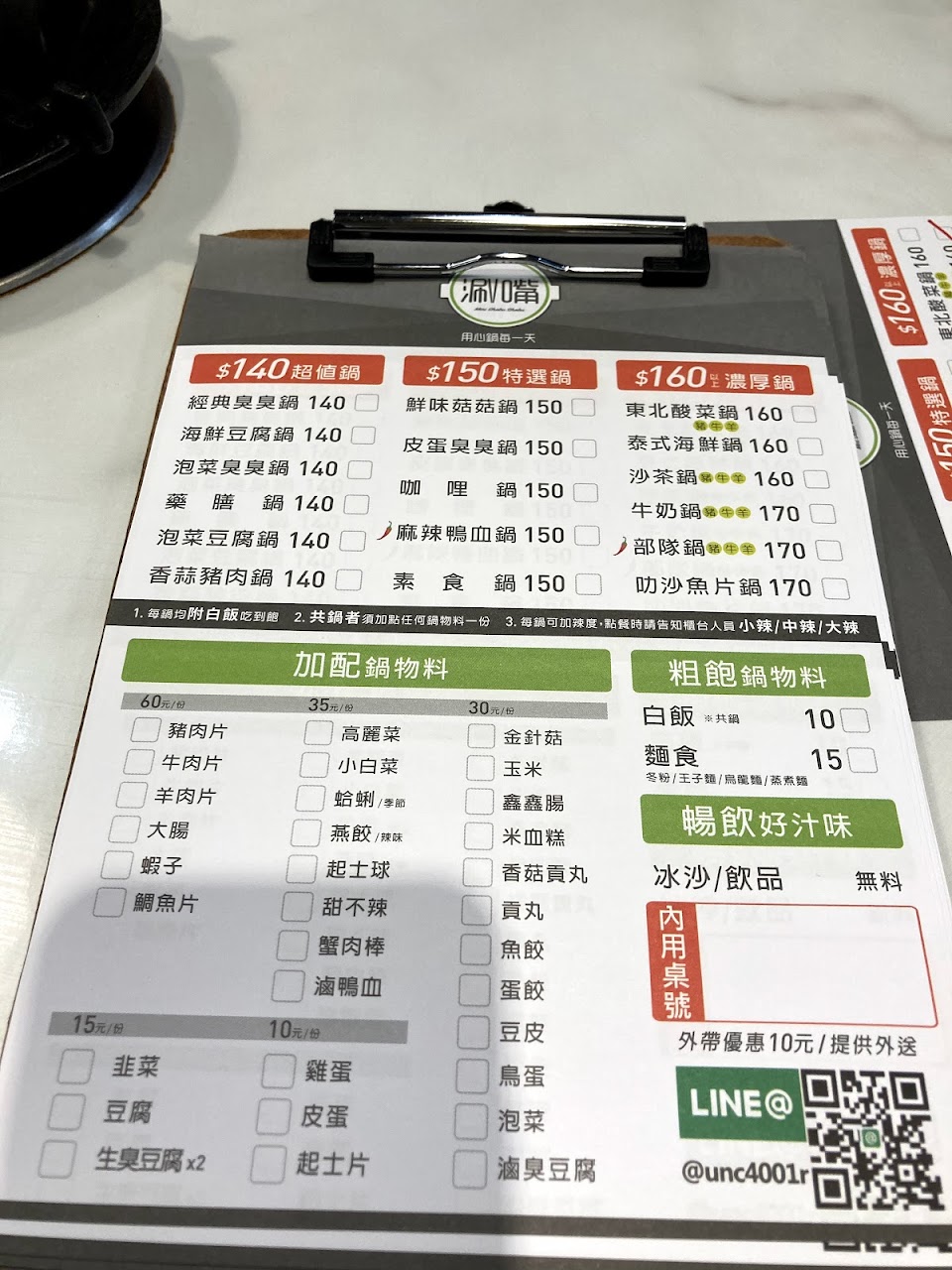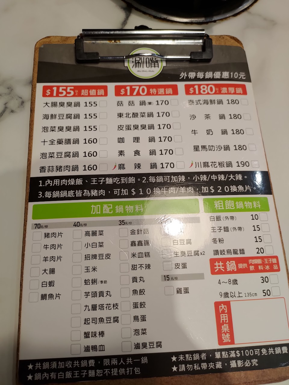 老闆娘招呼熱心、環境乾淨舒適、價格大約比一般臭臭鍋店多20-50元,但品質夠好,我認為值得,找不出什麼缺點,推薦?