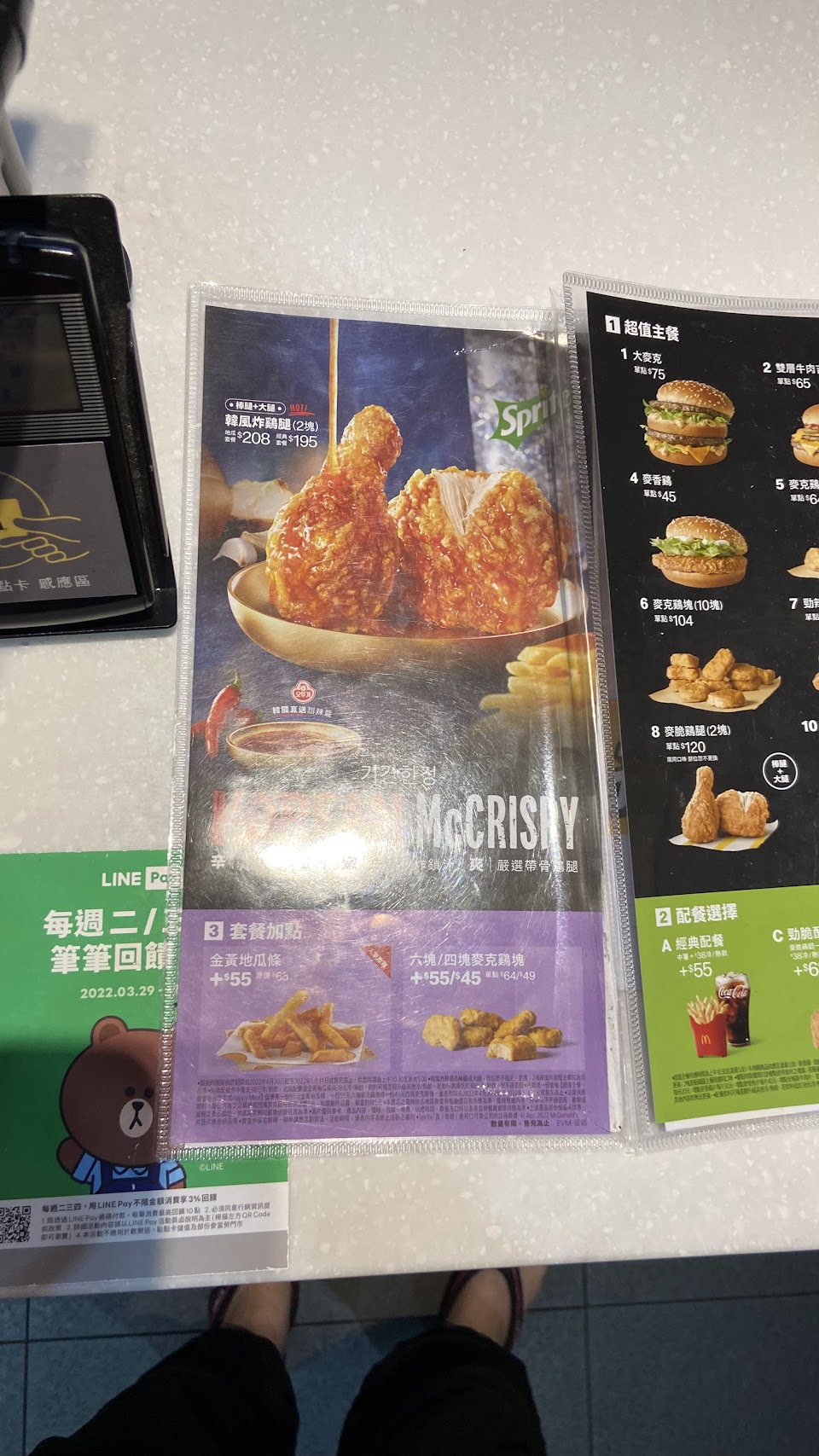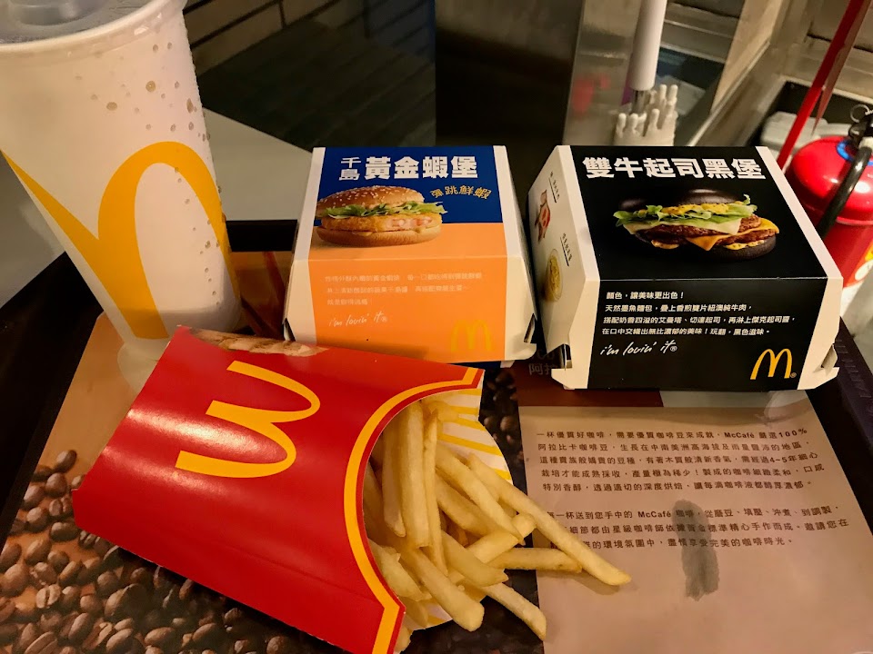 應該是拜訪過最悲慘的麥當勞了,只有提供外帶,2.3樓沒過消防安檢不能內用,新的豬排魷魚堡套餐185,一點都不好吃….