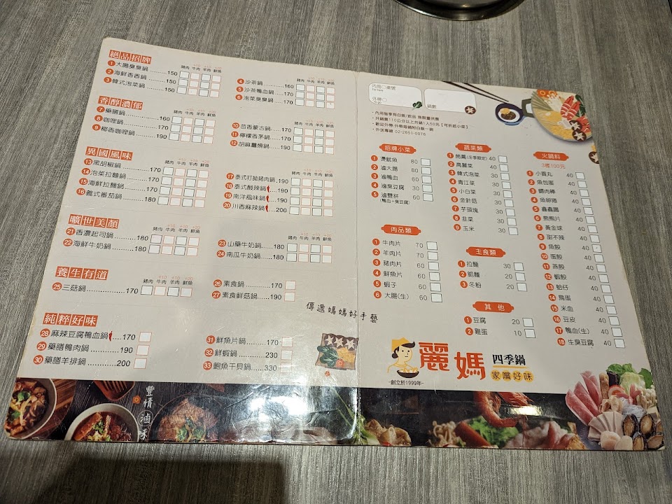 2024最新在地推薦餐廳的菜單_麗媽四季鍋-南港店的菜單、圖片