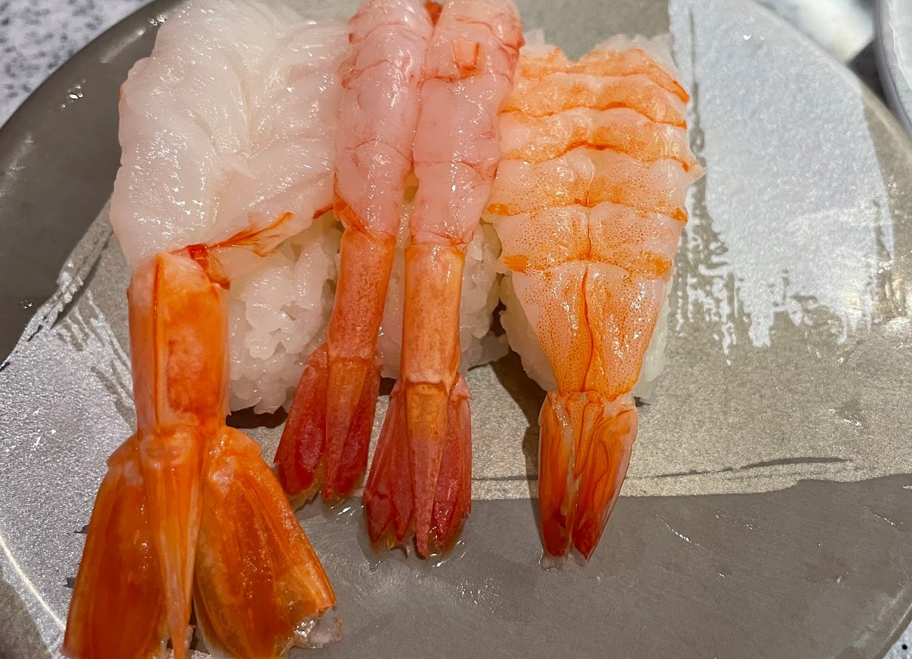 菜色種類較少,生蝦沒有壽司郎的甜!帶小孩來嚐鮮,看火車送菜來很興奮!