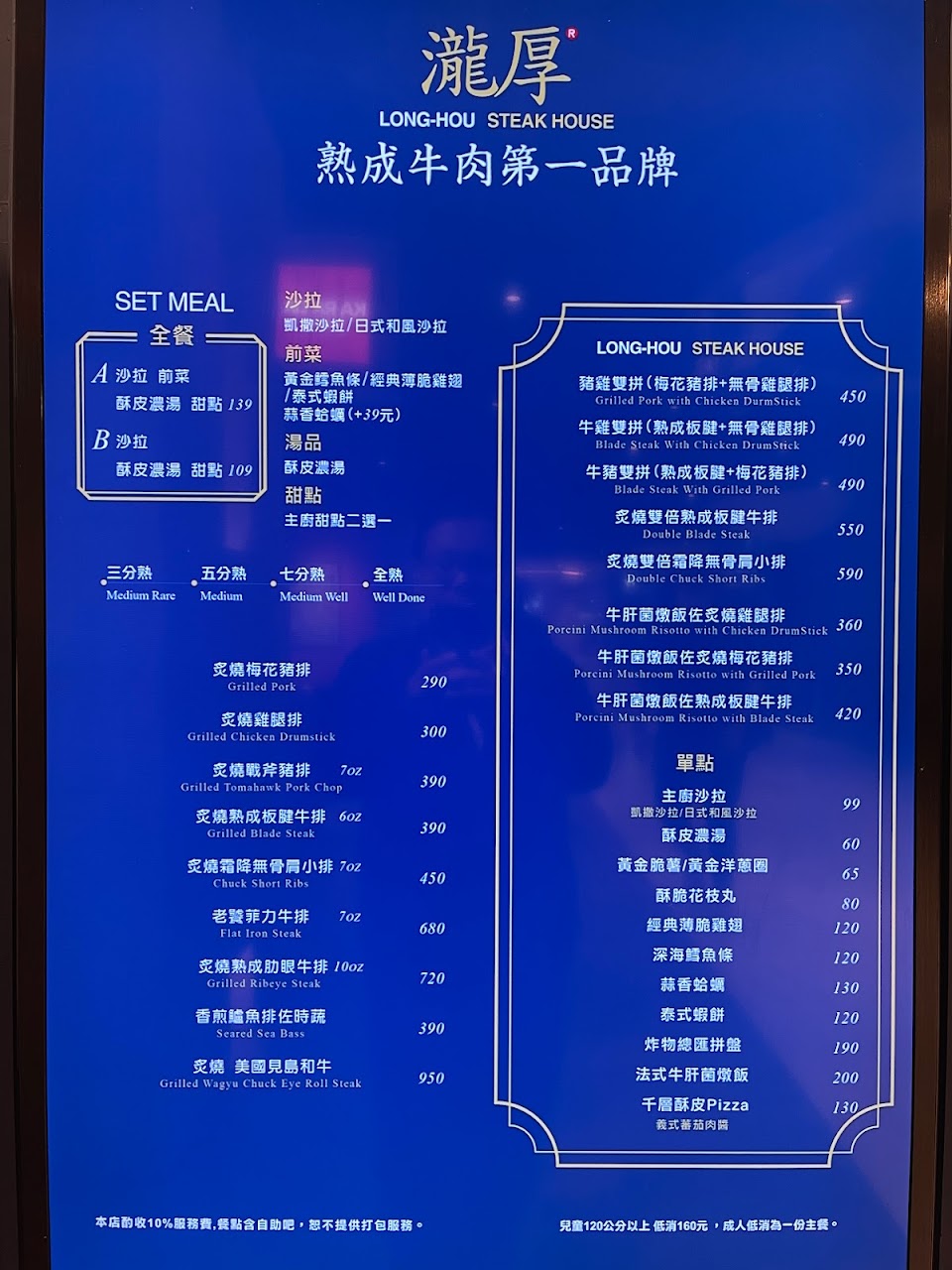 第一次進來南港車站用餐逛街,女主人愛吃牛排館(太久沒吃了)??在谷歌搜尋了一下,發現了一家A棟3樓的炙燒熟成牛排館,分為瓷盤跟鐵盤套餐,點的餐點在我的名單中,肉質真的好吃沒話說,店內的牛肉羅宋湯如果單點主菜時讓你喝到(爽)?我是點套餐所以。。。多個牛排基本的酥皮濃湯喝,也是非常好喝,整體餐點都很可口好吃,服務品質跟店家環境也很好,很推薦的一家牛排館。
