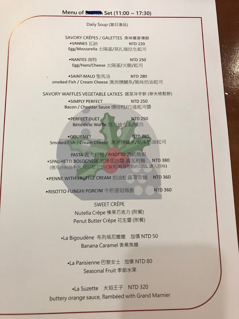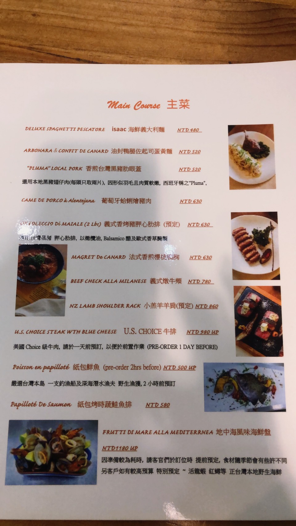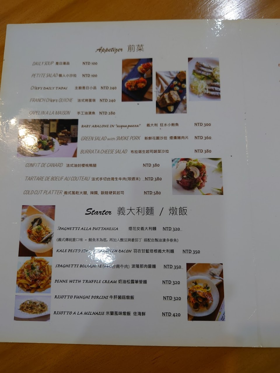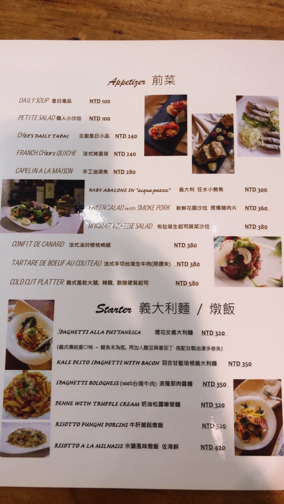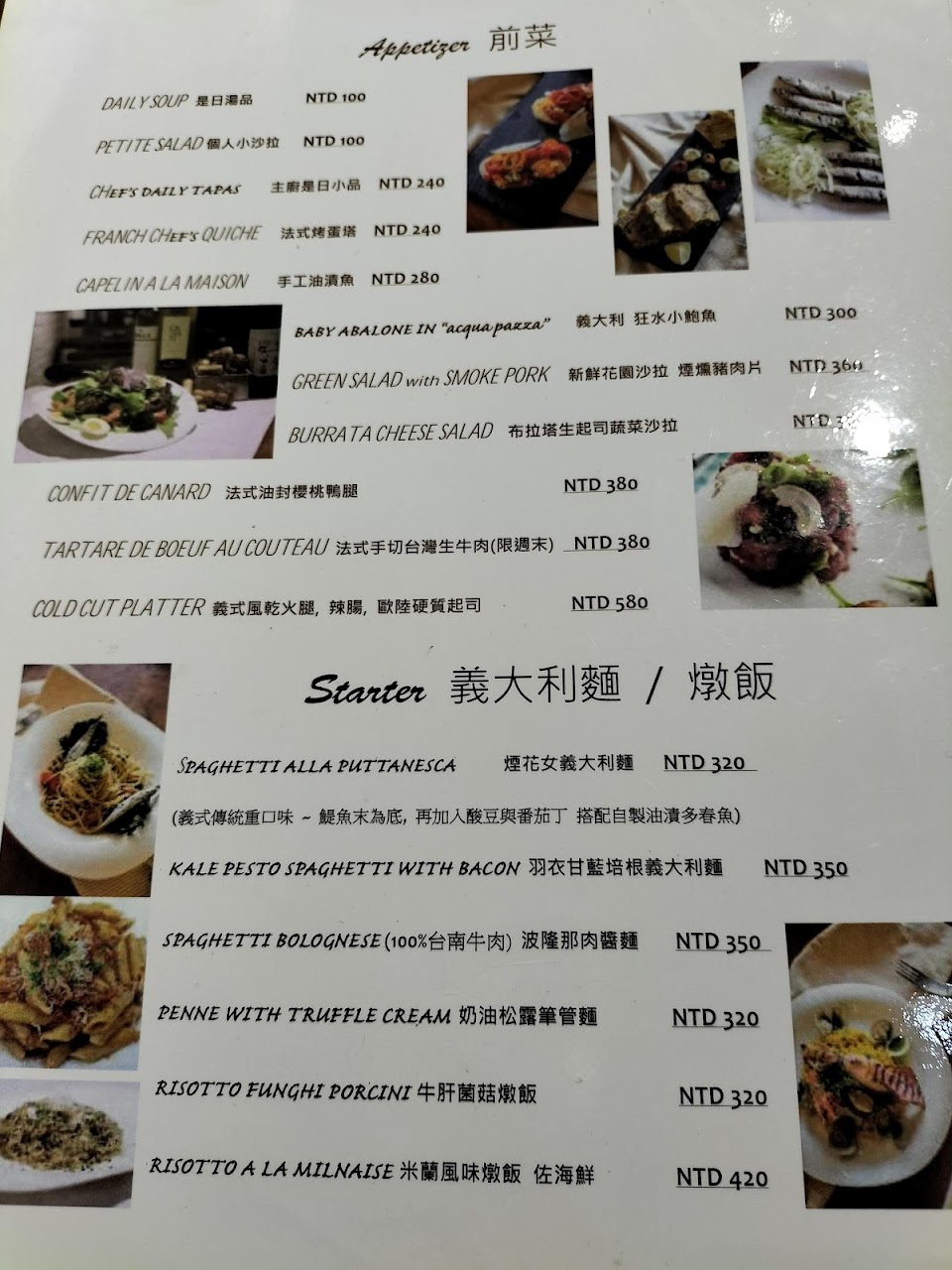Menu上提供的餐點不算多 多屬經典菜色