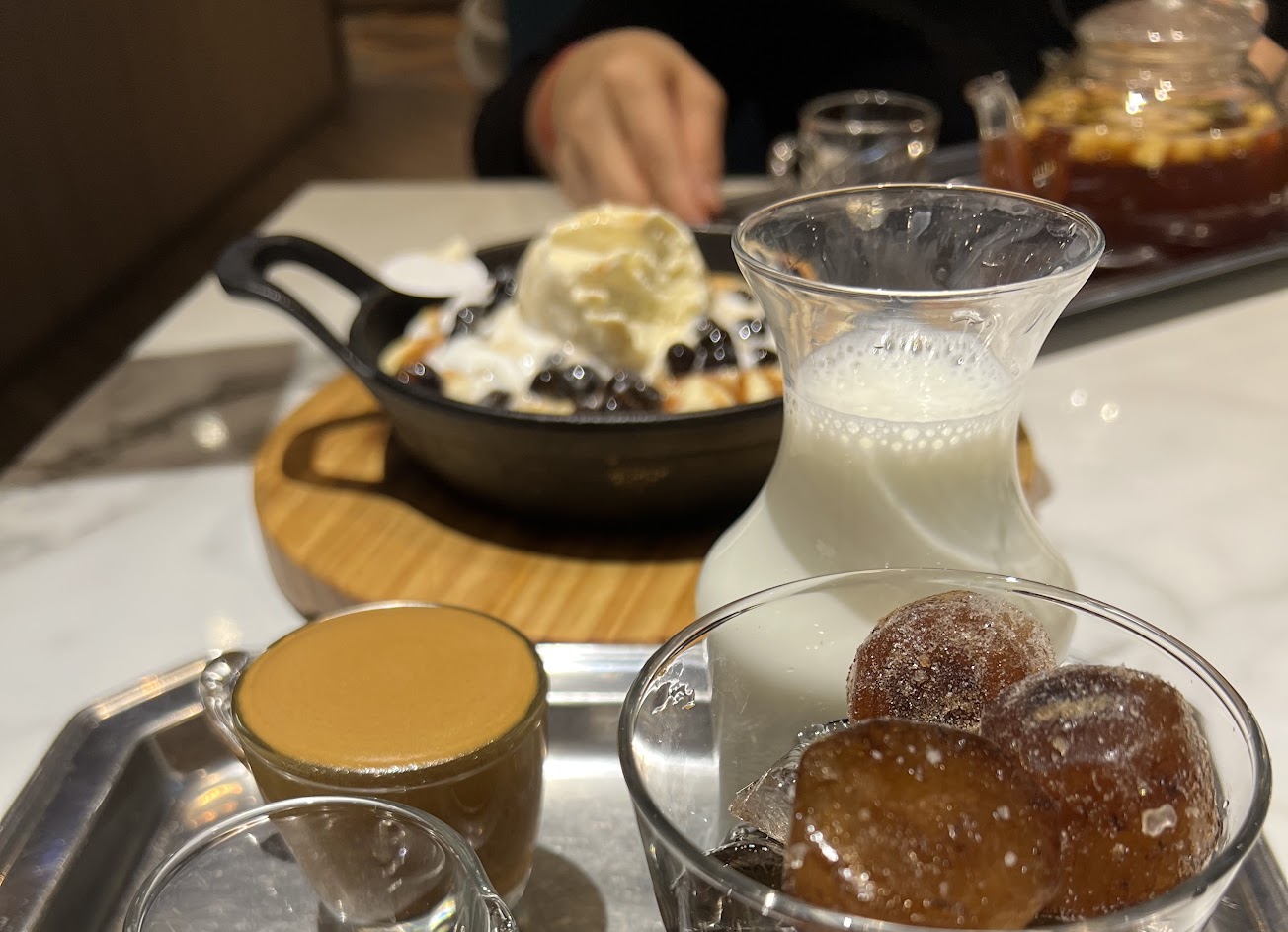 焦糖布蕾就是跟一般buffet 能吃到的等級,CP值算低;黑糖珍珠冰淇淋麻糬鬆餅,蠻好吃,但甜度真的太高,超越螞蟻人的程度。環境不錯,很悠閒。