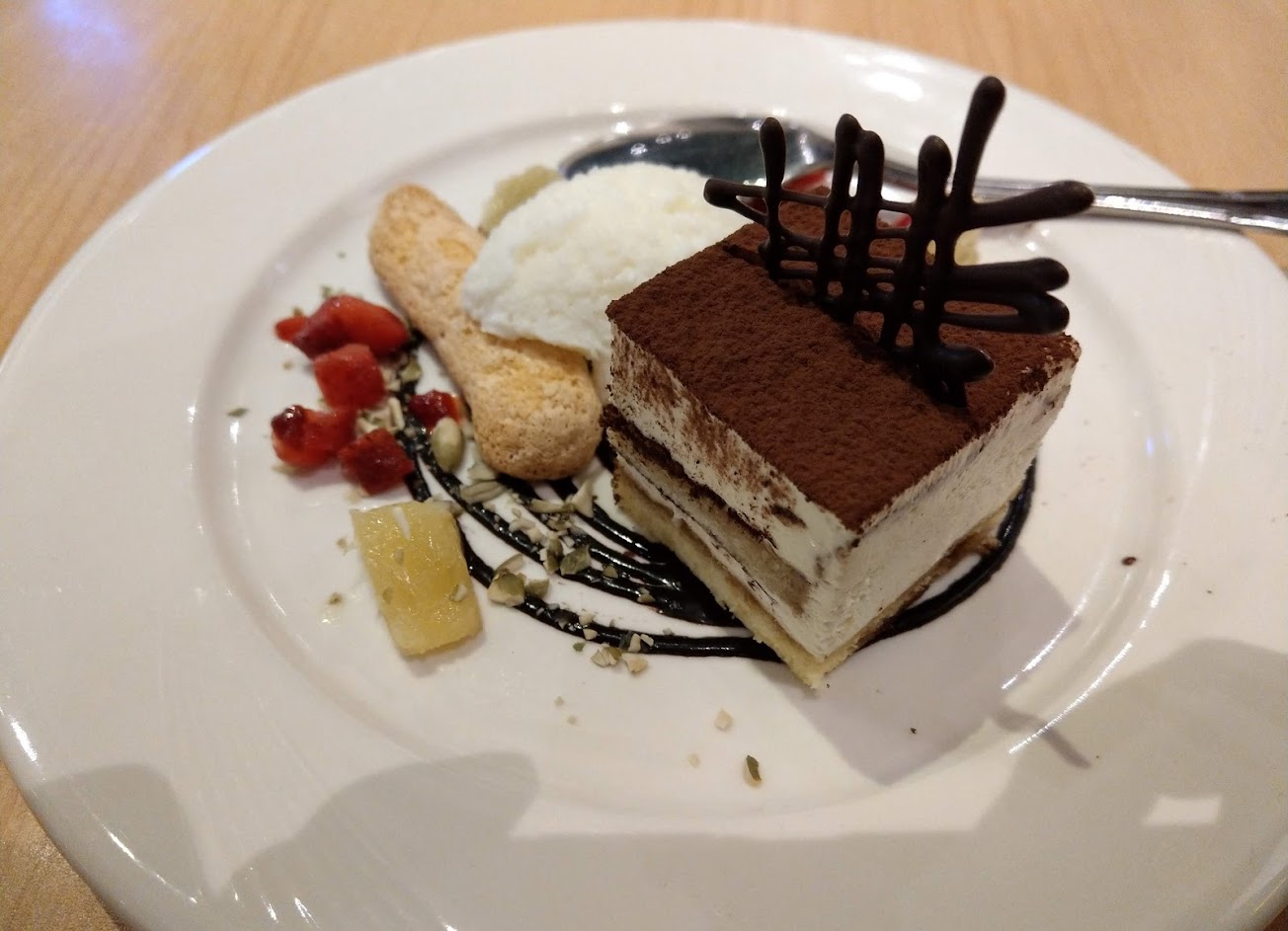 知名連鎖的西餐廳,提供義大利麵、披薩為主的菜色。這次除了招牌菜之外,還點了烤雞、櫻桃鴨肉串等主食。 前菜的濃湯和沙拉都還可以,鴨肉串是用特殊的鋼棍串起來,視覺效果蠻奇特的,可惜味道不怎麽樣。 主食的義大利麵、披薩、烤餅都很不錯,算是非常安全的選擇,不會踩雷。這次特別點的烤雞,外觀看起來很厲害,實際上肉質鬆垮,還是圖片上的看起來好吃很多。 至於飲料和甜點,表現倒也平穩,沒有令人特別驚豔就是。整體來說,這兒的裝潢很有現代感,上餐速度也快,很符合台灣人用餐的步調,口味上還是以招牌菜色比較好吃,其餘較為一般,很適合多人聚餐的餐廳。