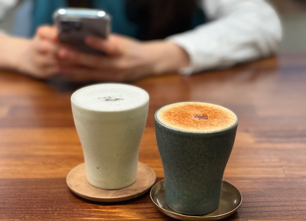溫熱的餐包夾著醬香炒麵 日式醬的甘醇搭著清爽柴魚 鹹香味噌拌入微焦的烤飯糰 吃一口讓人一秒到?? 淡黃色茶湯的四季春,透著優雅花香不苦澀 暖暖的肉桂拿鐵,基底是使用偏酸的咖啡豆