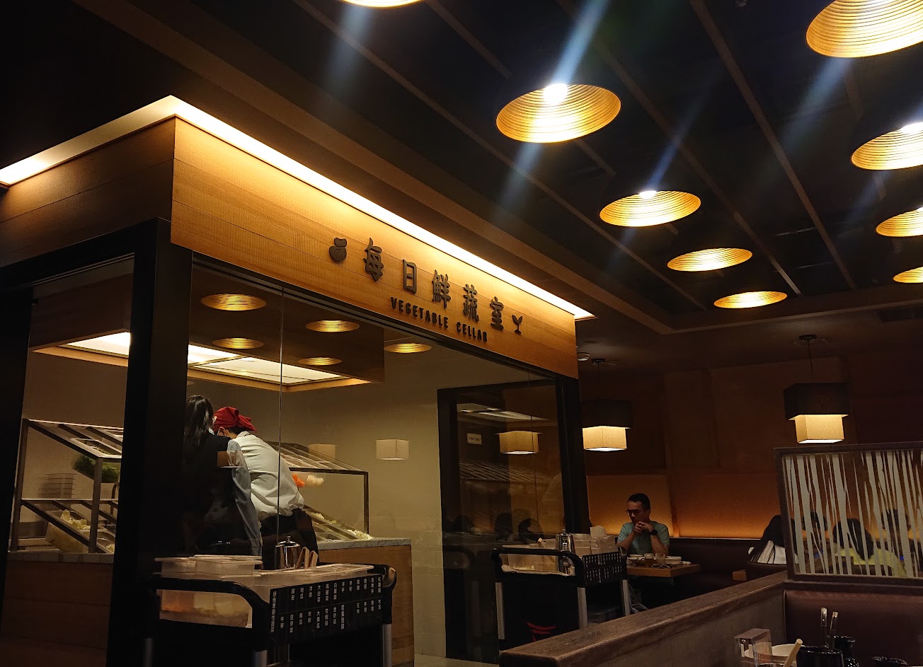 蔬菜會有服務人員推著車到桌邊服務,問你需要什麼,直接夾給你,服務算不錯。