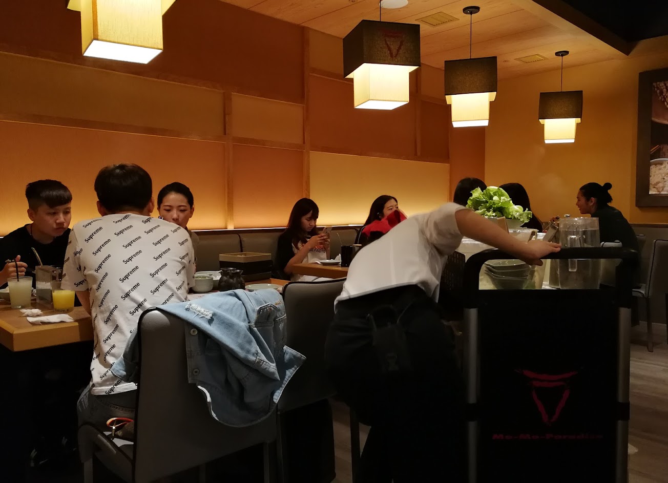 MOMO連鎖品質都還蠻好的,有壽喜燒跟其他湯頭可以選不是單純吃壽喜燒。基本菜盤菜車該有的都有,本人不吃牛、豬肉都還不錯肉片厚度剛好不會太薄,雞肉是用成肉丁中間比較不好熟但煮太久會很乾。 服務員服務態度很好,有時會拿菜盤來問還需要什麼,菜車好像比較少推出來可能是餐廳比較小走道有限。基本上要什麼東西都馬上就送來也不太會拖,東西也不會給的很寒酸,價格一般給人感受算好沒吃過可來試試。