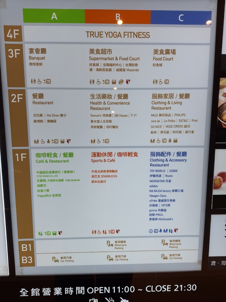| 星期日 | 11:00–21:30 |