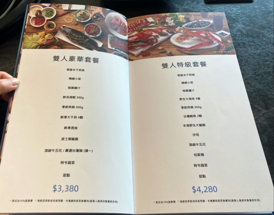四人套餐四人極品套餐4680加一成服務費。