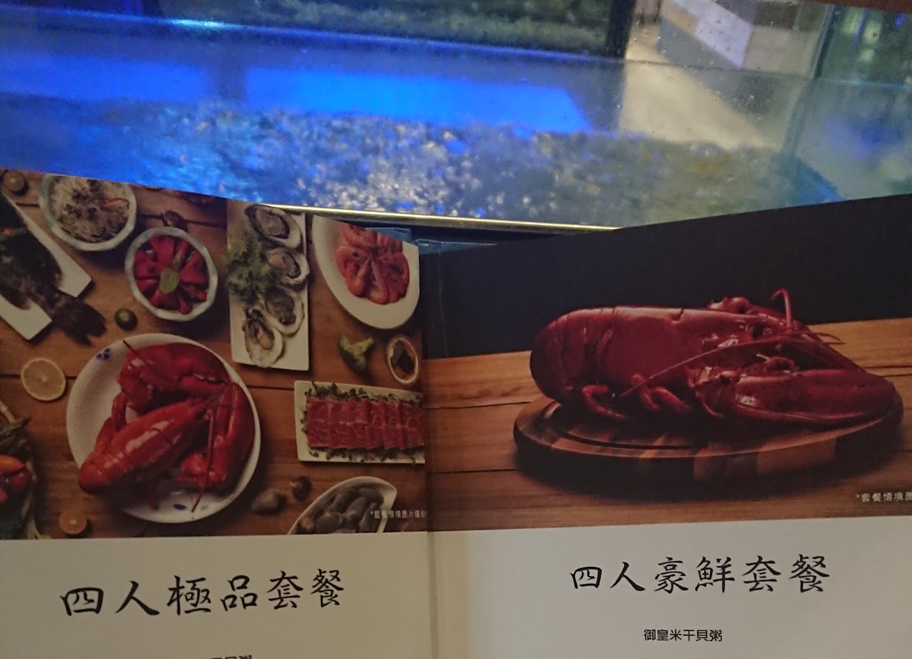 這家位於中信園區B棟3樓,但在很角落,旁邊是全聯,要仔細找才能找到大門。一進門就看到很多活蹦亂跳的海鮮們,入座後點了四人極品套餐3680元,剛好6月有波士頓龍蝦980元買一送一,就另外加點。