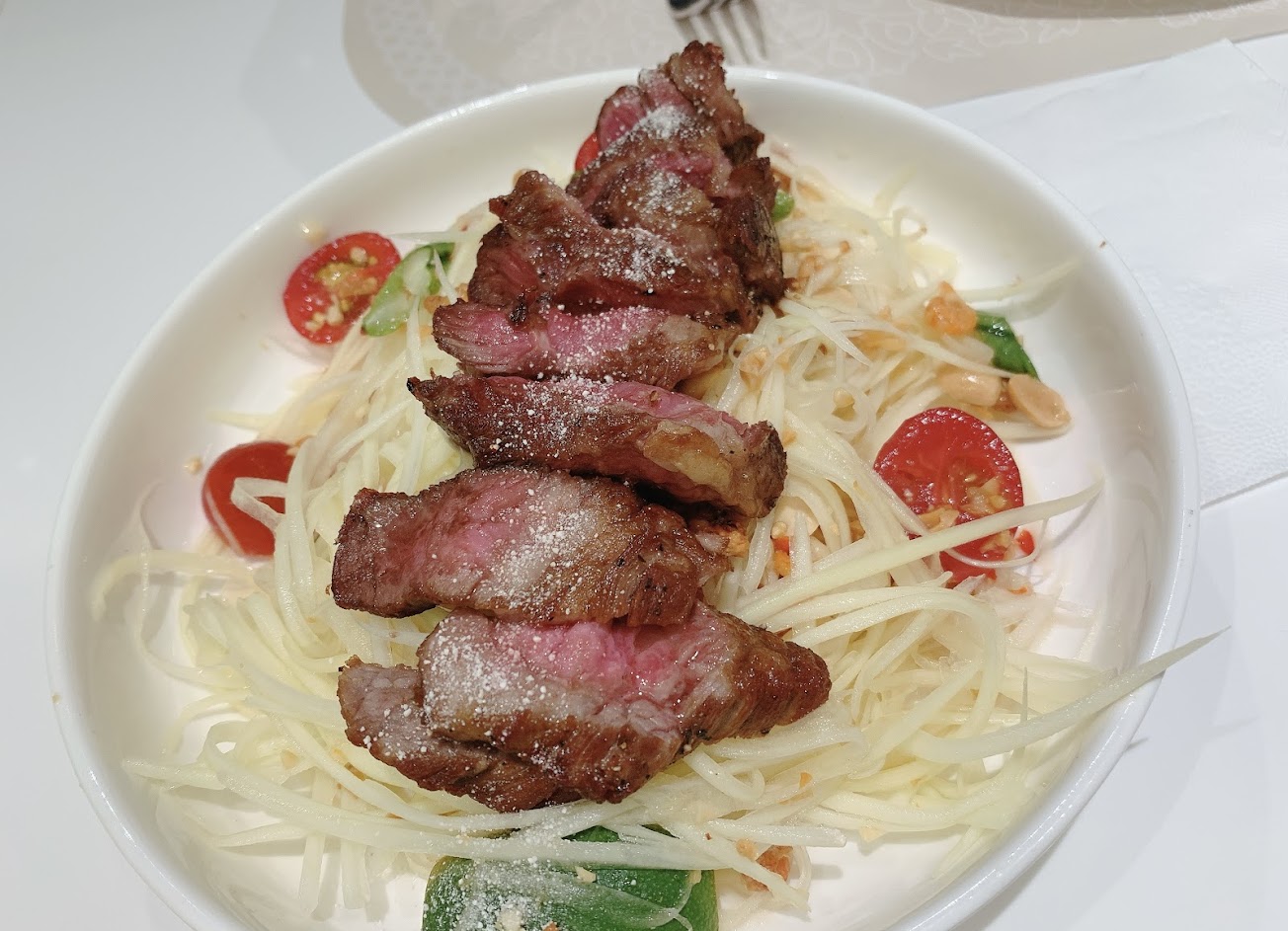 感覺很想下午茶的餐廳 前菜香辣雞肉不會很辣,很開胃 一貫泰式口味的海鮮涼拌吃起來很清爽,想一吃再吃 主餐點選綠咖哩牛肉醬感覺可以再多一點 整體很飽也很推