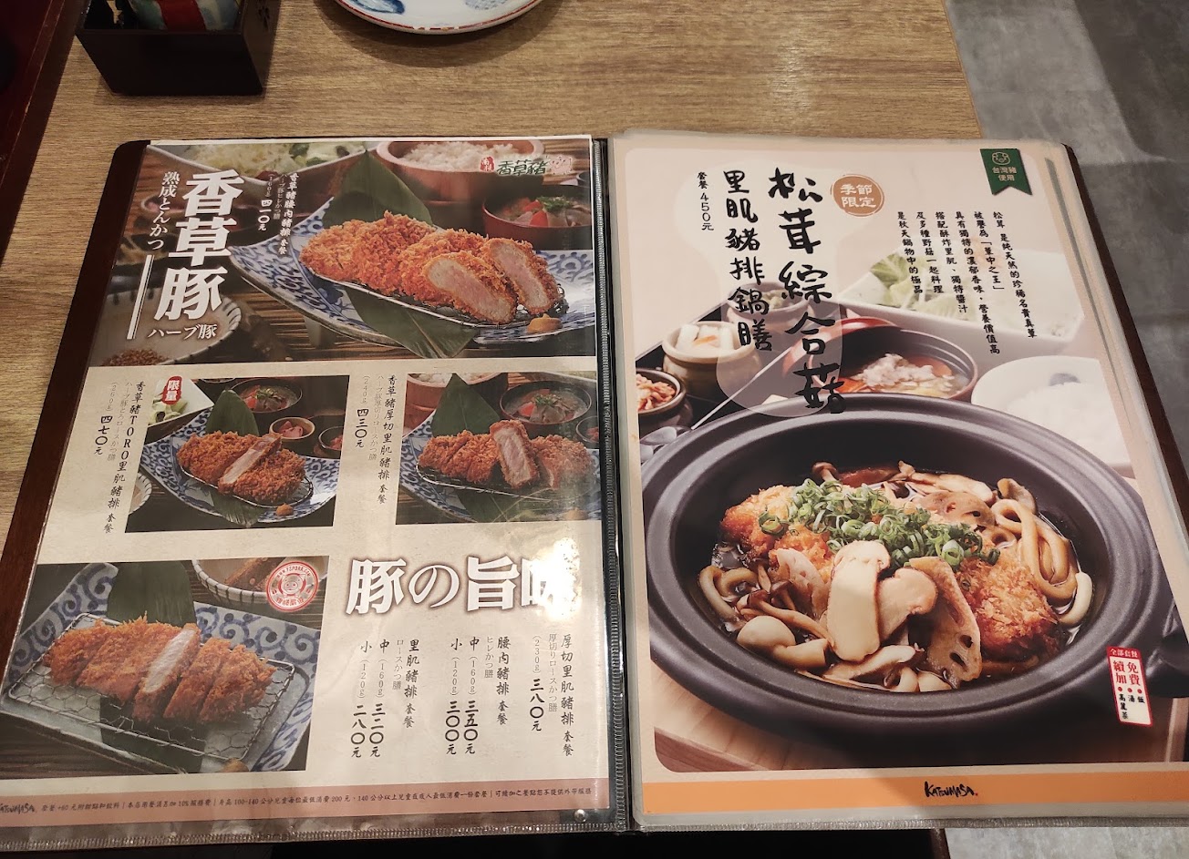 今天中午在這裡用餐,店內裝潢還滿有日式氣氛的,我點招牌套餐,一開始會送上一碗芝麻讓你研磨後加入辛口或甘口的豬排醬,滿有趣的,主菜含有豬排和炸蝦,尤其是豬排炸的很嫩很好吃,飯可以選擇有麥飯不加價,還會附上一碗山藥泥,後來我吃到一半沒有飯了服務生還會貼心的詢問要不要加飯,副菜有蔬菜沙拉、茶碗蒸、味噌湯,飯後還有甜點和飲料,我點的是香草冰淇淋和玄米茶,後者有點苦味我不是很喜歡喝,不過香草冰淇淋還算濃郁,整體來說挺好吃的,服務態度也不錯