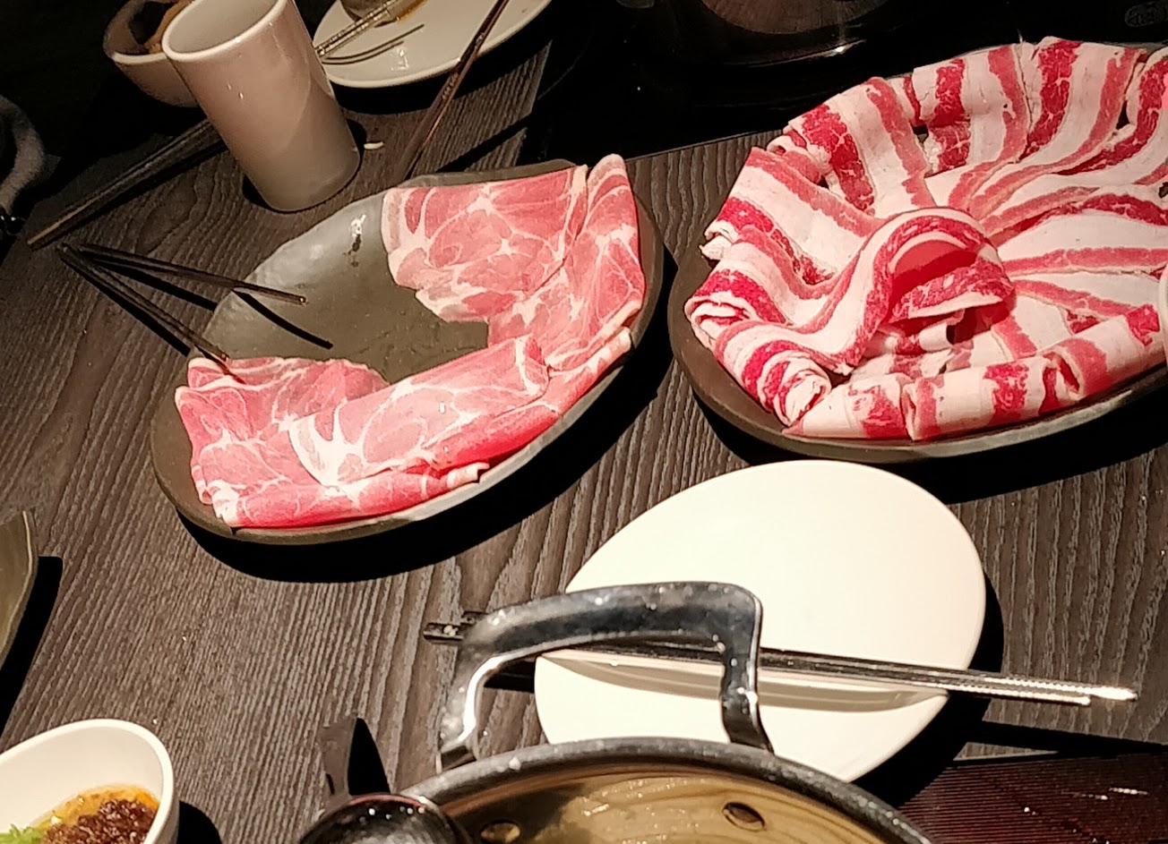 肉不算厚,要很專心涮,只要不紅了馬上就拿起來吃還算有彈性,但一不小心泡在熱湯裡多五秒就會有點柴。