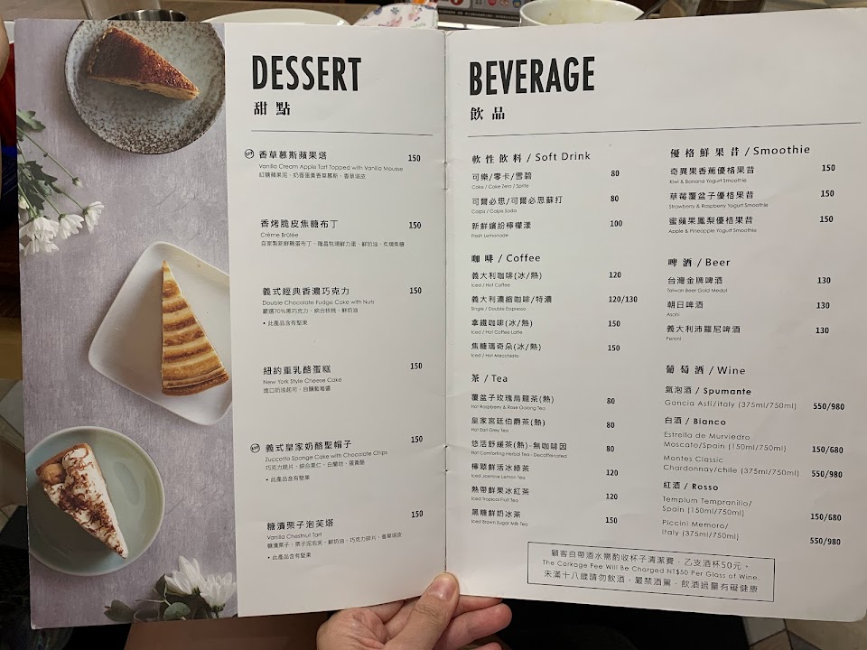 服務人員在餐點送達之後不久,會來關心客人口味,在用餐完畢後,也會先收走空盤子 服務 內用 餐點類型 晚餐 平均每人消費金額 $400-600 餐點:5 服務:5 氣氛:4