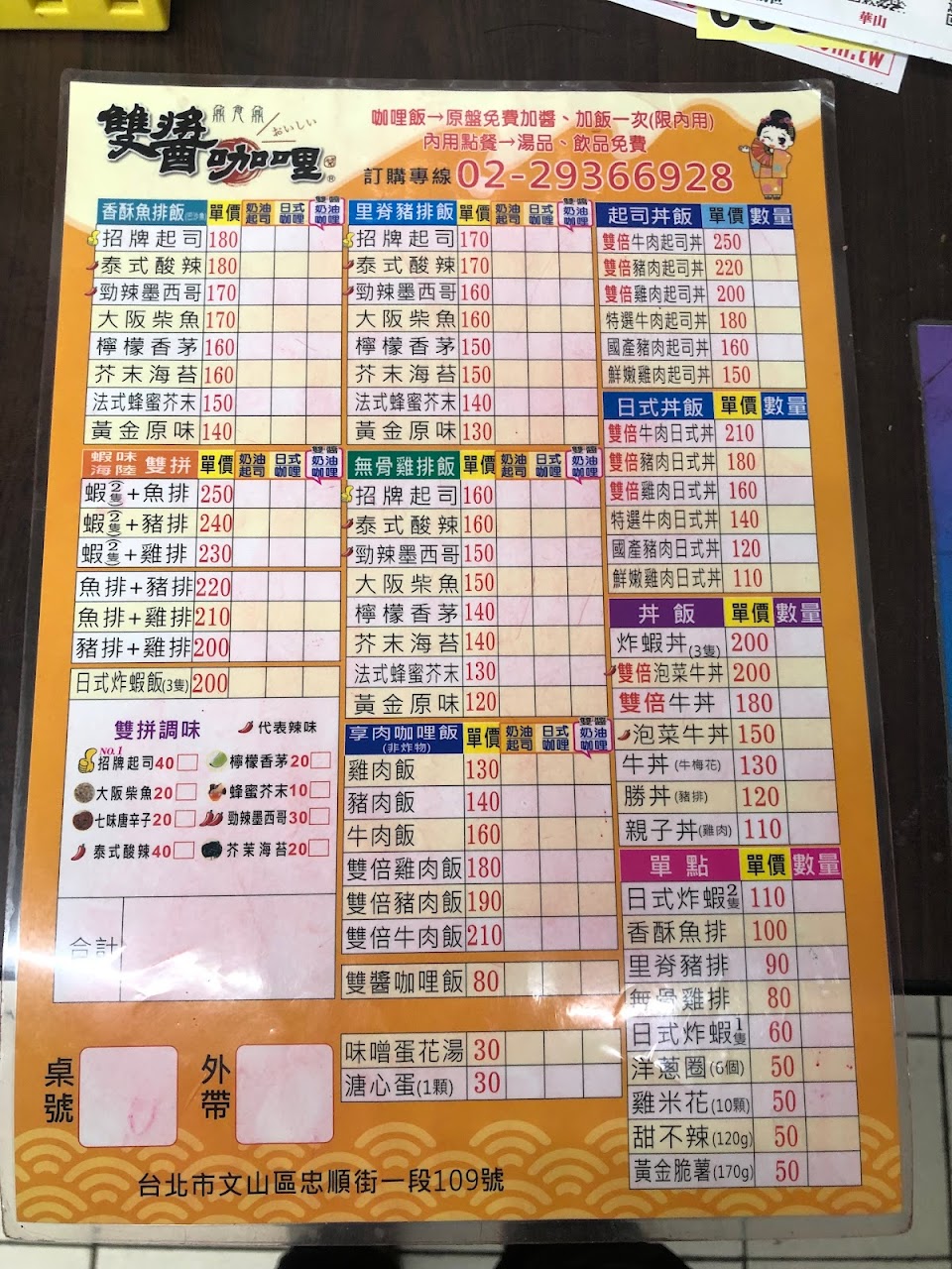 2024最新在地推薦餐廳的菜單_雙醬咖哩 忠順店的菜單、圖片