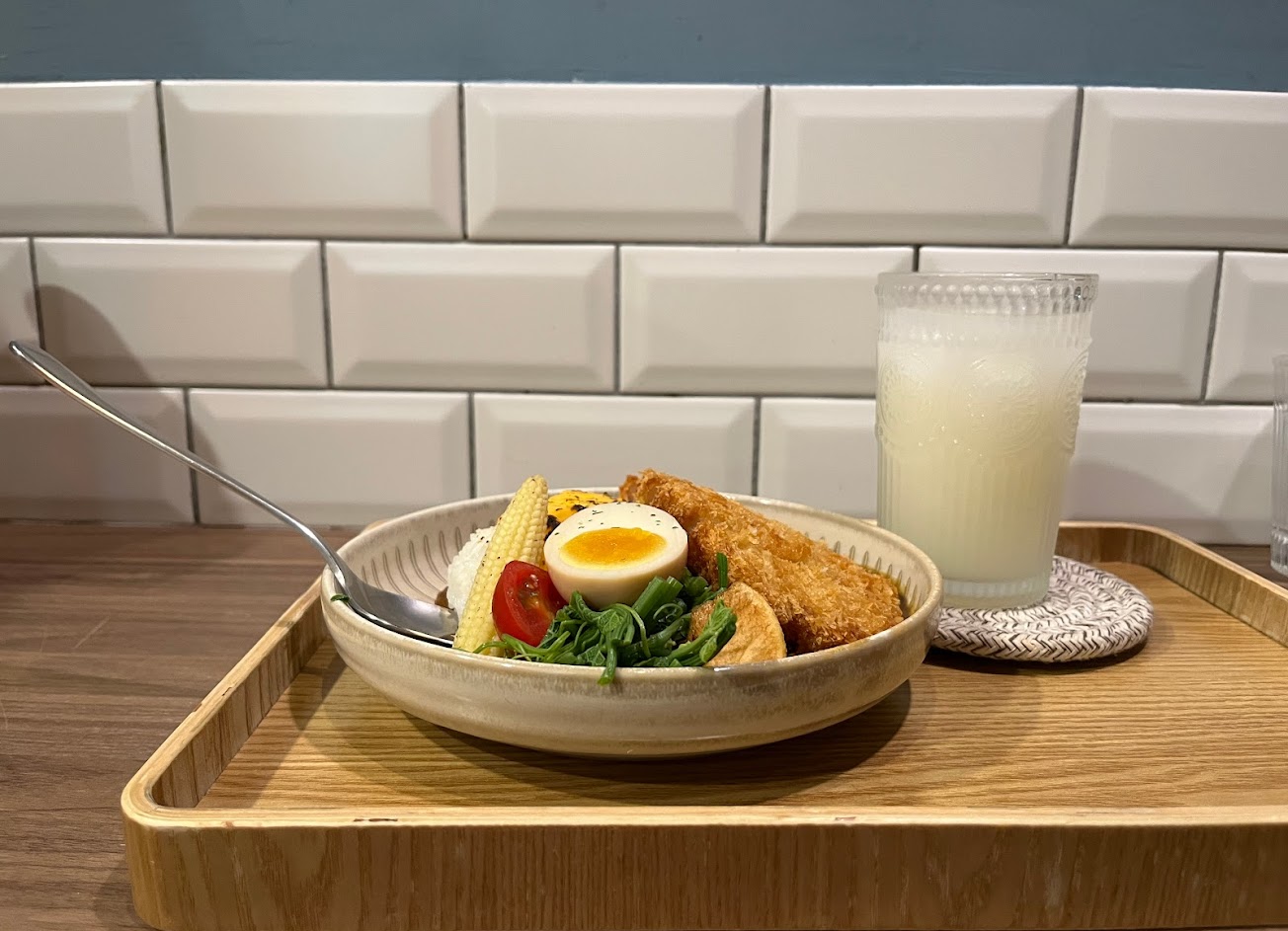 先說結論-很好吃的咖哩飯。飯是用月光米,單白飯就很好吃,醬的部分真材實料可以看得出來是用很多蔬菜熬煮而成。點的是可樂餅咖哩,可樂餅味道也很好,南瓜可樂餅偏南瓜甜還看的到南瓜本人,起司可樂餅也很好吃。加購套餐以加購的價格來說很超值,湯中規中矩內用可續,甜點細緻度很高很好吃。很推薦這家店???