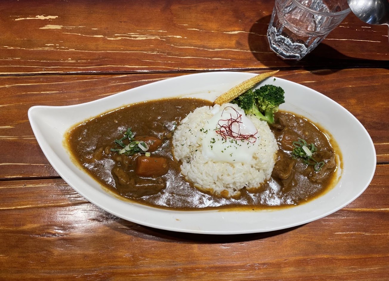 老闆是長相有個性但是心裡很溫暖的一個人,店面雖小但是非常具有溫度,在用餐時如果有任何疑問都可以跟老闆說,餐點份量非常足夠,可以吃得非常飽,味噌湯好喝,咖喱飯可以選擇歐姆蛋或是火龍果蛋包亦或是溫泉蛋,附近許多居民都是這裡的常客。這邊也適合喝點小酒點些炸物抒發一下生活中煩悶的心情。
