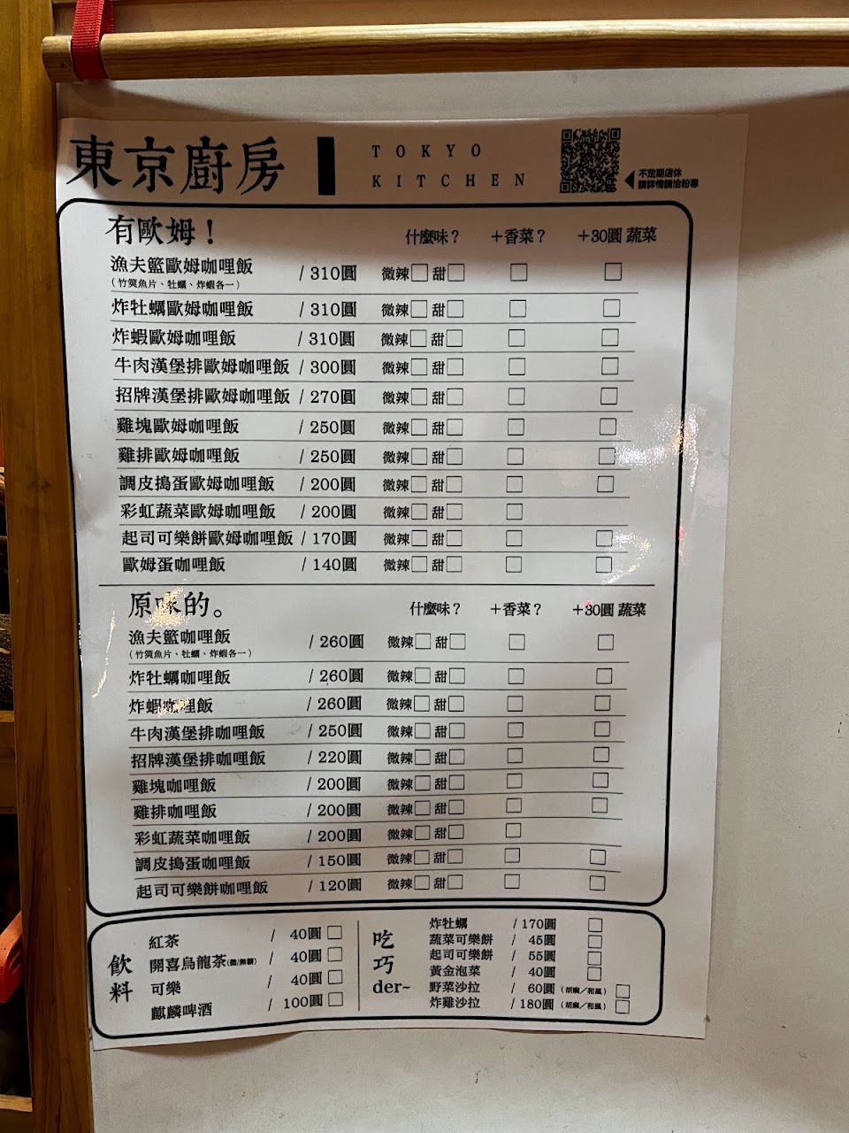 2024最新在地推薦餐廳的菜單_東京廚房-日式咖哩專賣(店休日請看FB/IG)的菜單、圖片