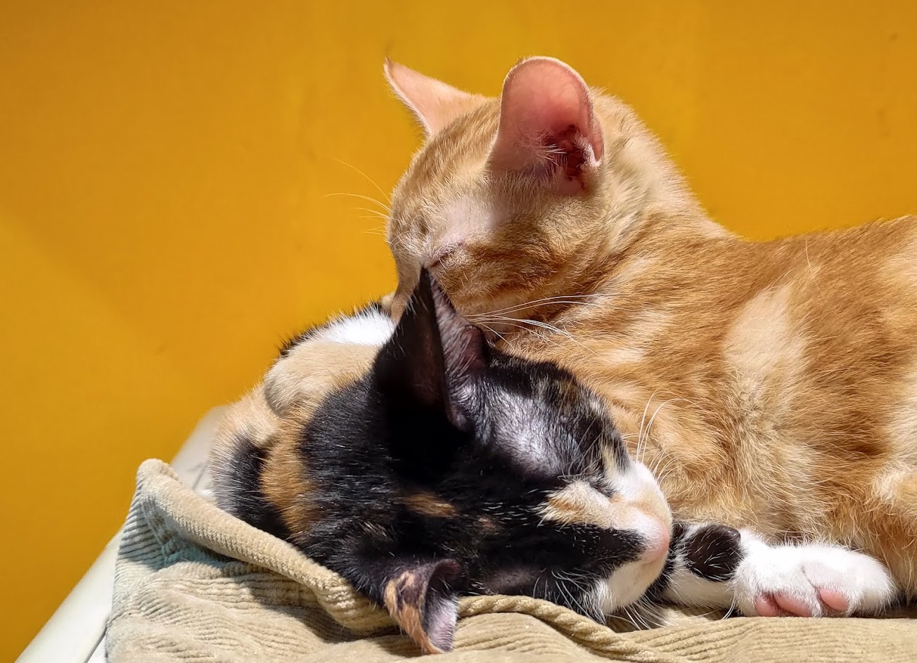 店員很親切很有禮貌,貓很可愛,兩隻感情超好都黏在一起? …