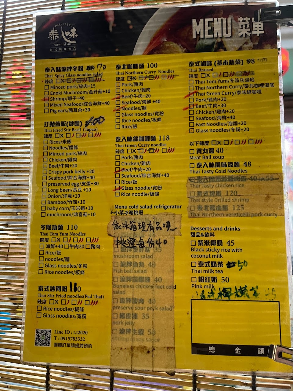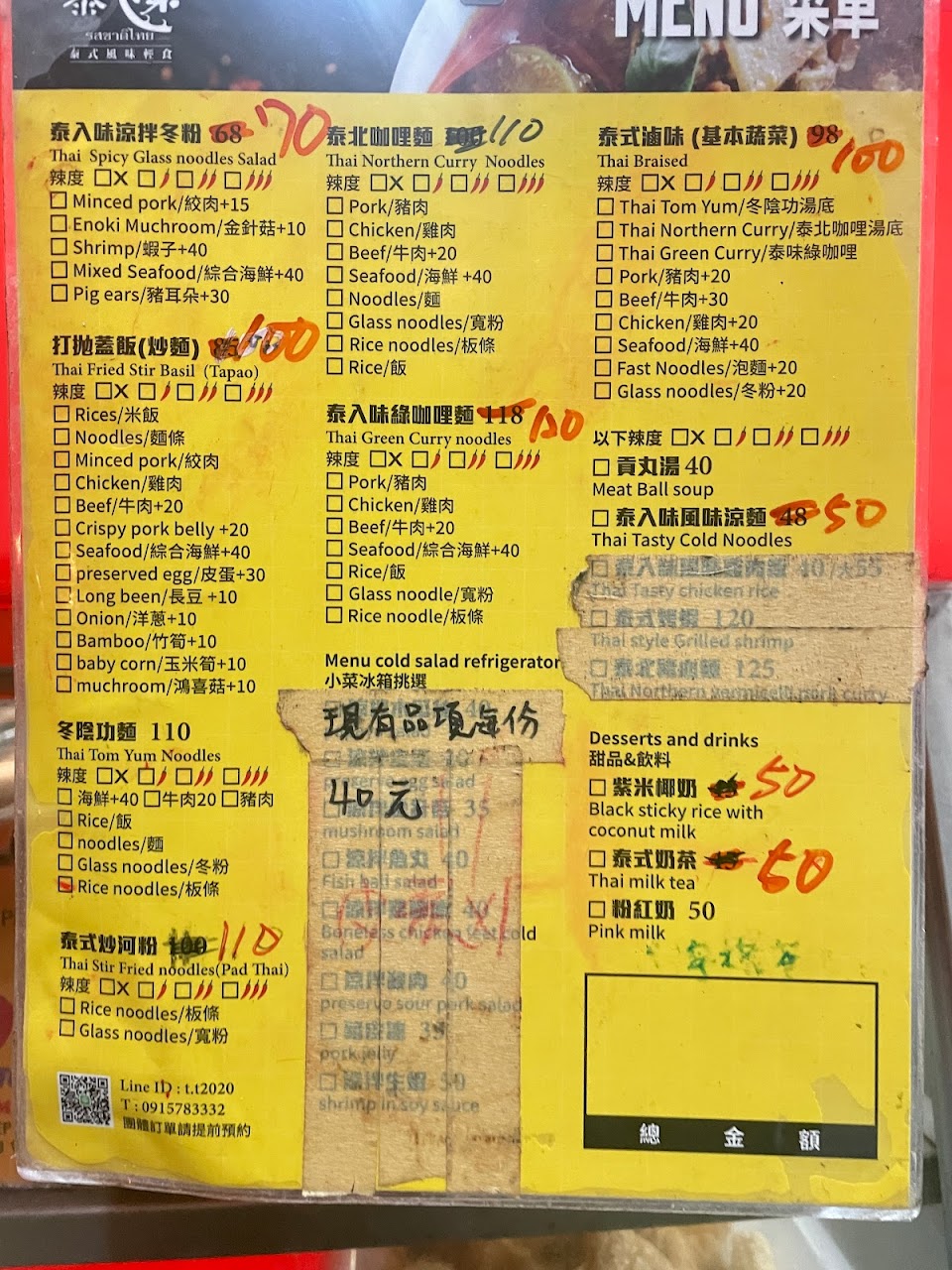 用ubereats點餐,之前點過一次午餐還不錯,今天發現宵夜時間有開就又點了,品質真的差太多… 跟Ubereats上圖片配料都不一樣,綠咖哩完全是湯,沒有照片上的煎蛋只有泡湯的半顆水煮蛋、兩片豆皮、兩塊雞肉,應該要辣的綠咖哩完全不辣非常甜。 涼拌海鮮$214,兩隻蝦子、沒有肉的蛤蜊、一些沒有味道的花枝、一堆貢丸切片跟魚板? 打拋豬肉炒麵吃起來像碎肉醬油炒麵,沒有打拋的味道,沒有魚露沒有辣,因為之前有吃過但早晚餐點品質也差太多了… 吃完的感覺:我是被詐騙了嗎??? 餐點:1