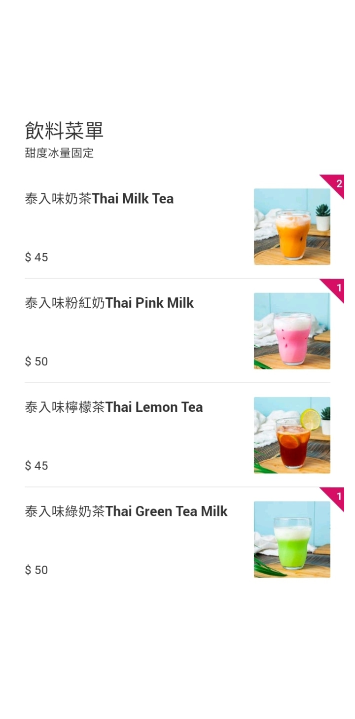 泰奶:一開始是好喝的,但因冰塊融化後,味道就變得偏淡。(下次要喝快一點?)