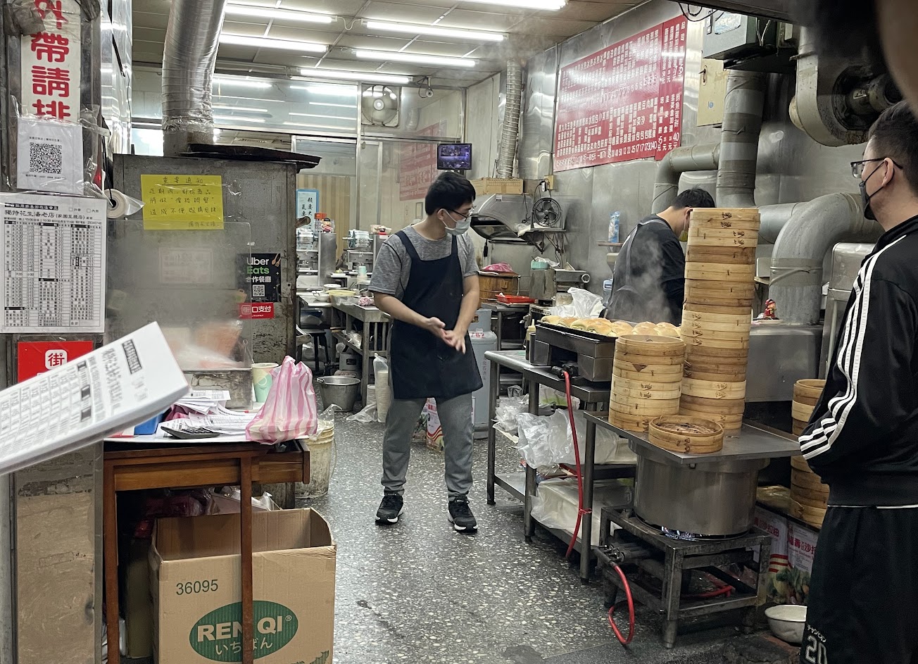 小籠包跟蒸餃還不錯吃,花生湯冰冰的很好喝,花生也很多,還有韭菜盒好吃,店裡的?️辣椒有辣超級讚!店內動作超級快,一下子點的東西都上齊了。