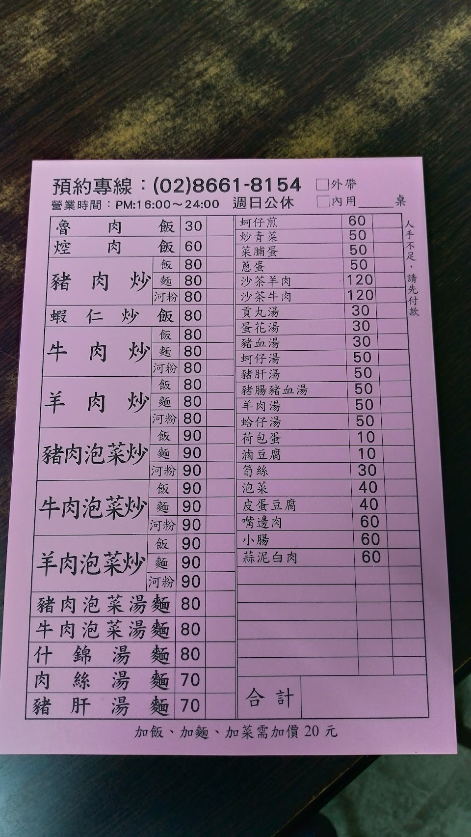 外帶 泡菜羊肉炒飯$90,有炒出鍋氣,有泡菜的甜香味。豬肉蛋炒飯$80,有鍋氣的古早味。豬腸豬血湯$60,沙茶風味不會有內臟的腥味,基本上是滿滿整碗的料。