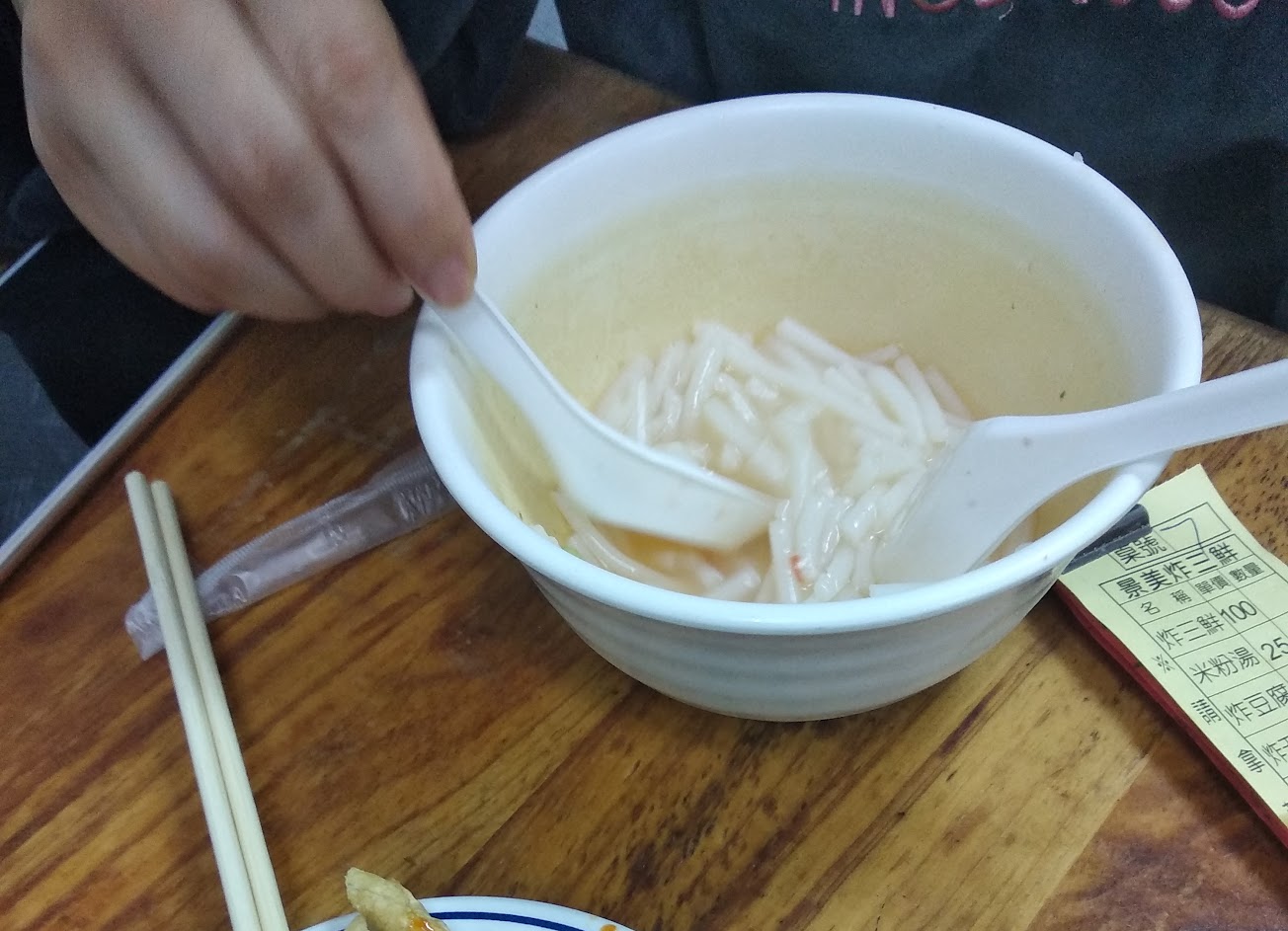 炸物都很好吃,cp值也很高,但米粉湯就普普通通,沒什麼味道,不過勝在便宜又大碗,是想省錢的人的好選擇