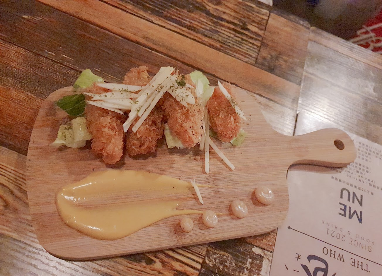 隱身在木柵巷弄內的小餐酒館。常常路過注意到常常滿座,菜單品項挺豐富,尤其調酒選擇挺多。喜歡老闆的幽默,讓點餐多了些小趣味,乍看餐點名稱有種直白的搞笑,但其實都是具體貼切的破題?