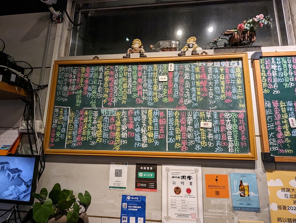木柵在地已久的日本料理,滿滿的手寫黑板菜單,收5%服務費,可刷卡,不用擔心現金不足。毛毛蟲壽司絕對是經典菜色,微炙燒鮭魚捲搭配莫札瑞拉起司,相當美味、南瓜湯濃郁又大碗,絕對料好實在、生魚片三種魚滿滿七大片,超級滿足!推薦大家來享用