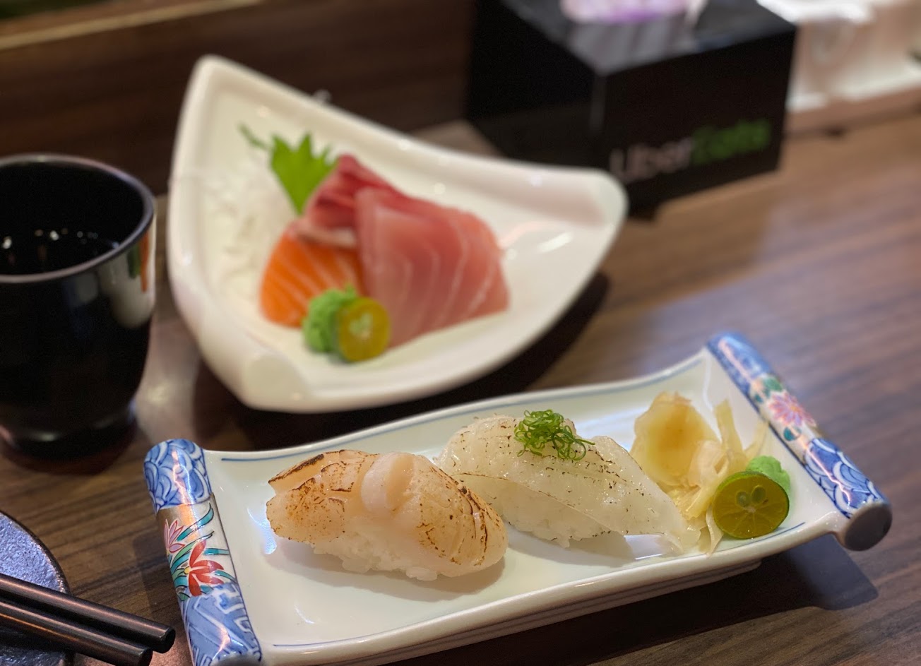 這裡的菜色品質很穩定,第一次來是單位主管請吃飯,第二次是跟太太一起來用餐,兩次用餐的經驗都很滿意,其中點的幾道菜特別出色,一個是店裡很有名的「毛毛蟲壽司」,外層是炙燒過的半熟鮭魚,滿溢油光,壽司裡有炸蝦、起司及小黃瓜,起司的香濃搭上鮭魚的甜跟小黃瓜的清爽,多重的口感絕妙的搭配。第二個是「炸蝦天婦羅」,麵衣顏色漂亮口感酥脆,蝦肉不乾不柴柔軟鮮甜,沾醬不搶味去除油膩感更增美味。第三個是「生魚片」新鮮又好吃。