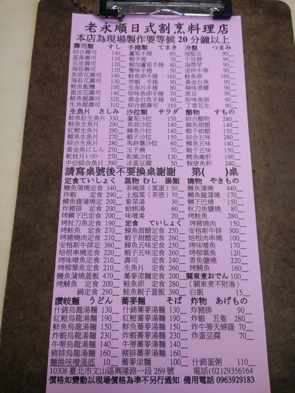 2024最新在地推薦餐廳的菜單_老永順日式割烹料理店的菜單、圖片