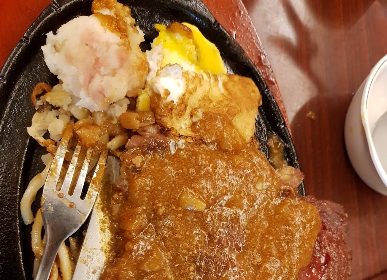 現在很少有牛排店,那麼有誠意,自助吧有爆米花 沙拉,烤吐司 玉米濃湯偏淡 牛肉清湯 飲料機 熱的飲料機和冰淇淋~牛排部分點了199牛排 醬料洋蔥醬味道偏淡~麵可以選螺旋麵和烏龍麵 ,起士牛排 普普 ,不過整體 在景美cp很高的一間店