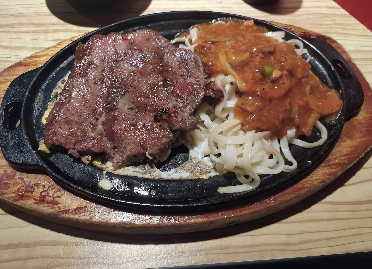 過了快一年,今天再次光臨用餐,口感不錯應該是換主廚了,五分熟就是接近五分熟,之前是過熟,剛好隔壁反映麵條過乾,二話不說,立刻整盤端進去換新,服務很好,很推。