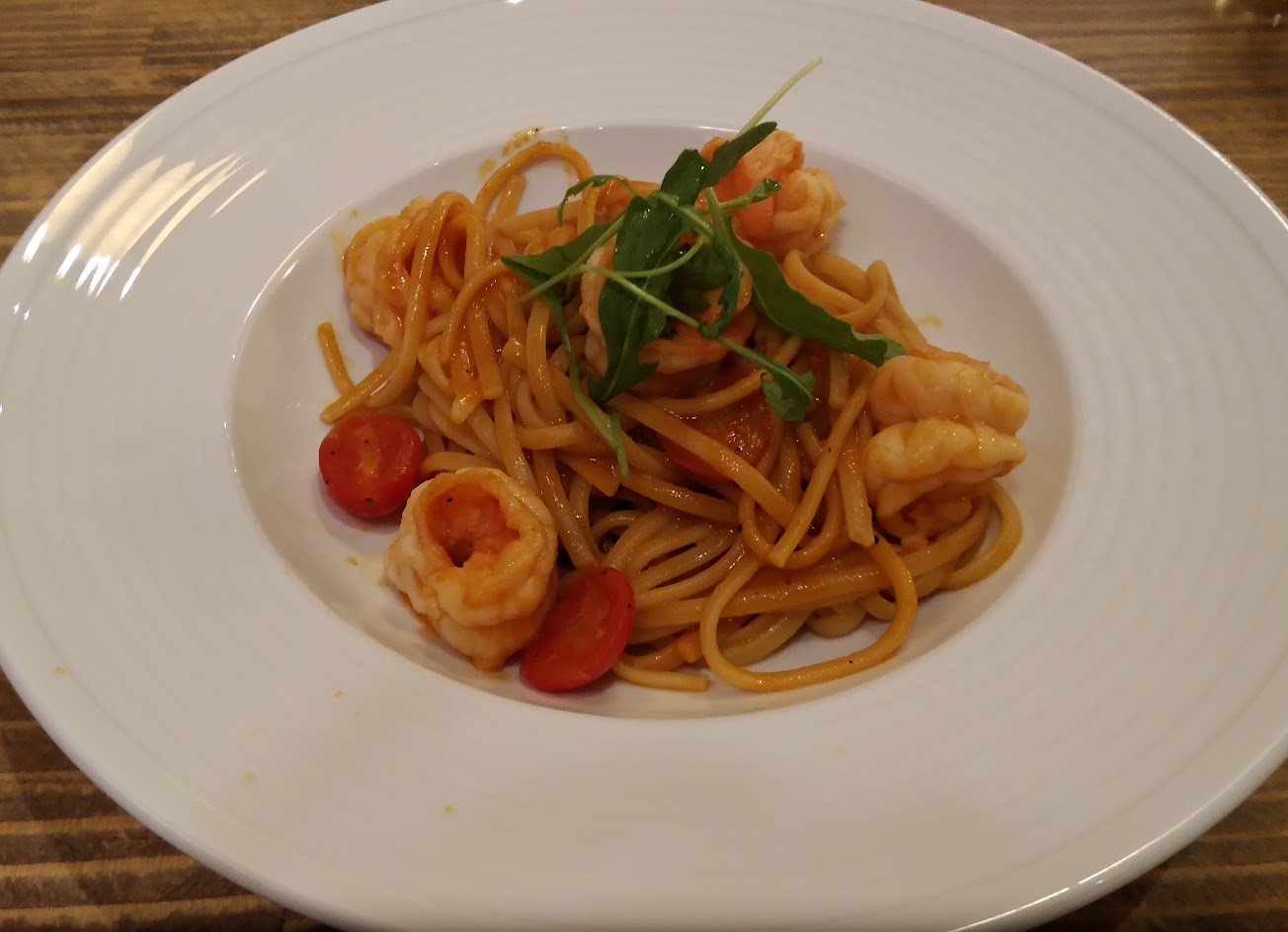 鮮蝦細扁麵好好吃,開心果冰糕好特別!