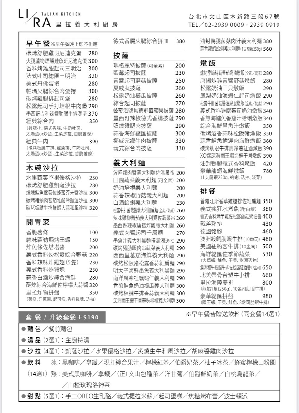 2024最新在地推薦餐廳的菜單_LI RA義大利廚房的菜單、圖片