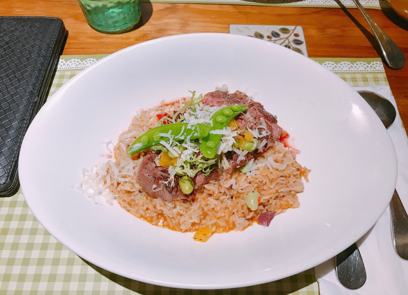 朋友點的溫泉蛋主餐則是燉飯口感太軟,不過飯的調味,蔬菜的烹調都還蠻好的!