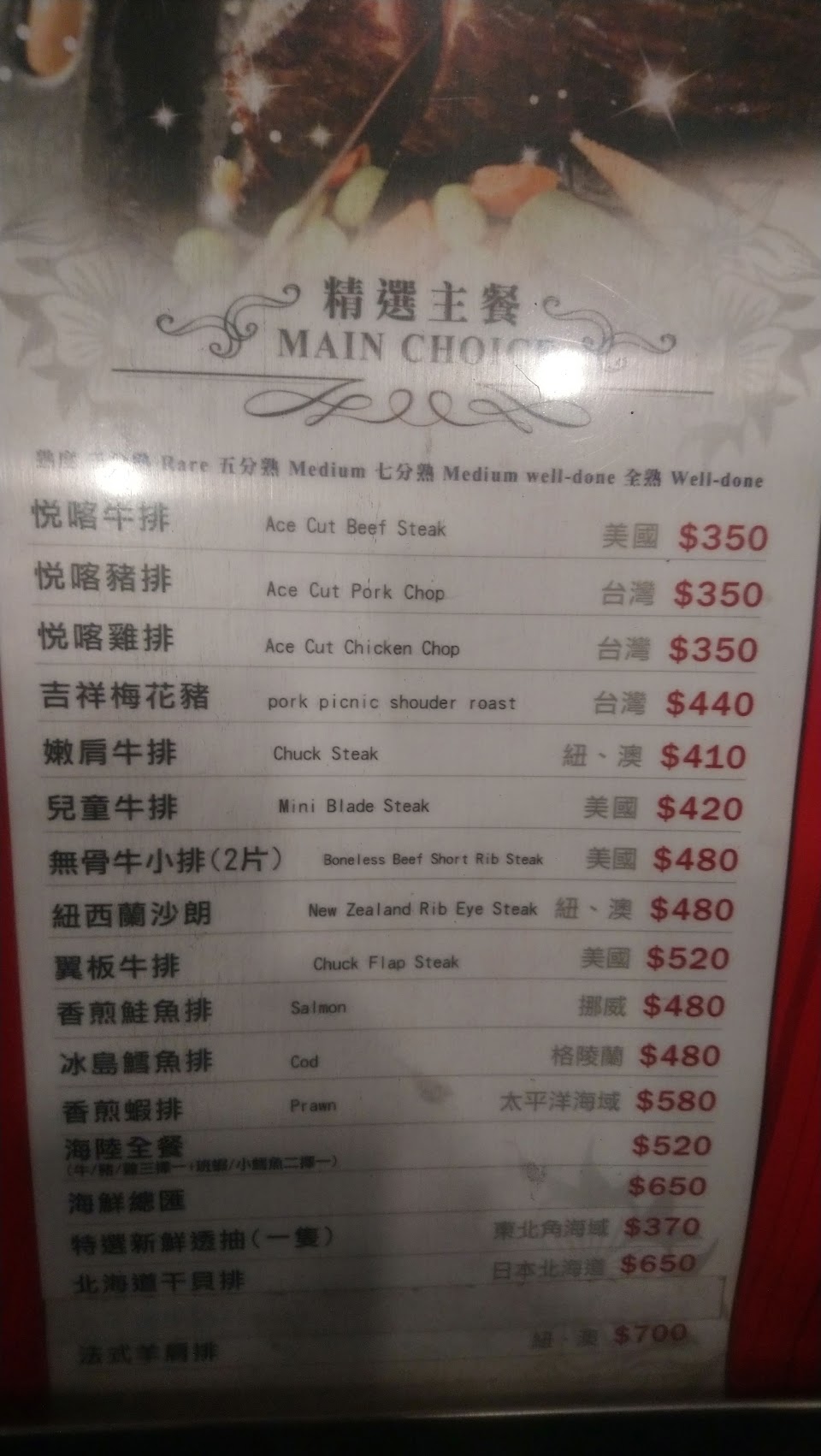 老闆娘非常熱情招待我羅宋湯羅宋湯好喝附餐都不錯,但是我點的沙朗牛排跟同桌的豬排都不太好,沙朗牛排筋很多很難切口感又很難咬,豬排太硬了,但是看在老闆娘熱情我也不好意思反應